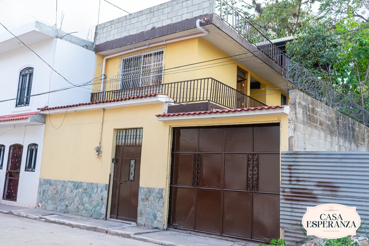 Indlu enhle yangasese yekoloni emizuzwini engu-5 ukusuka e-Basilica of Esquipulas. Amakamelo okulala angu-4 anemibhede engu-3 ngayinye nezindlu zokugezela eziphelele ezingu-3 ezinamanzi ashisayo. I-AC kuzo zonke izindawo. Igumbi lokuphumula elinakho konke, igumbi lokudlela, nekhishi. I-Wi-Fi yamahhala. Igalaji lezimoto ezingu-2. Ukuqedela kokunethezeka nawo wonke amasevisi. Izingadi ezivulekile nethala elihle elinezindawo ezinhle. Ukuvikeleka kuqinisekisiwe endaweni ethulile. Kulungele umndeni futhi kulungele amaqembu. Bhukha manje futhi ube nokuhlala okungenakulibaleka!