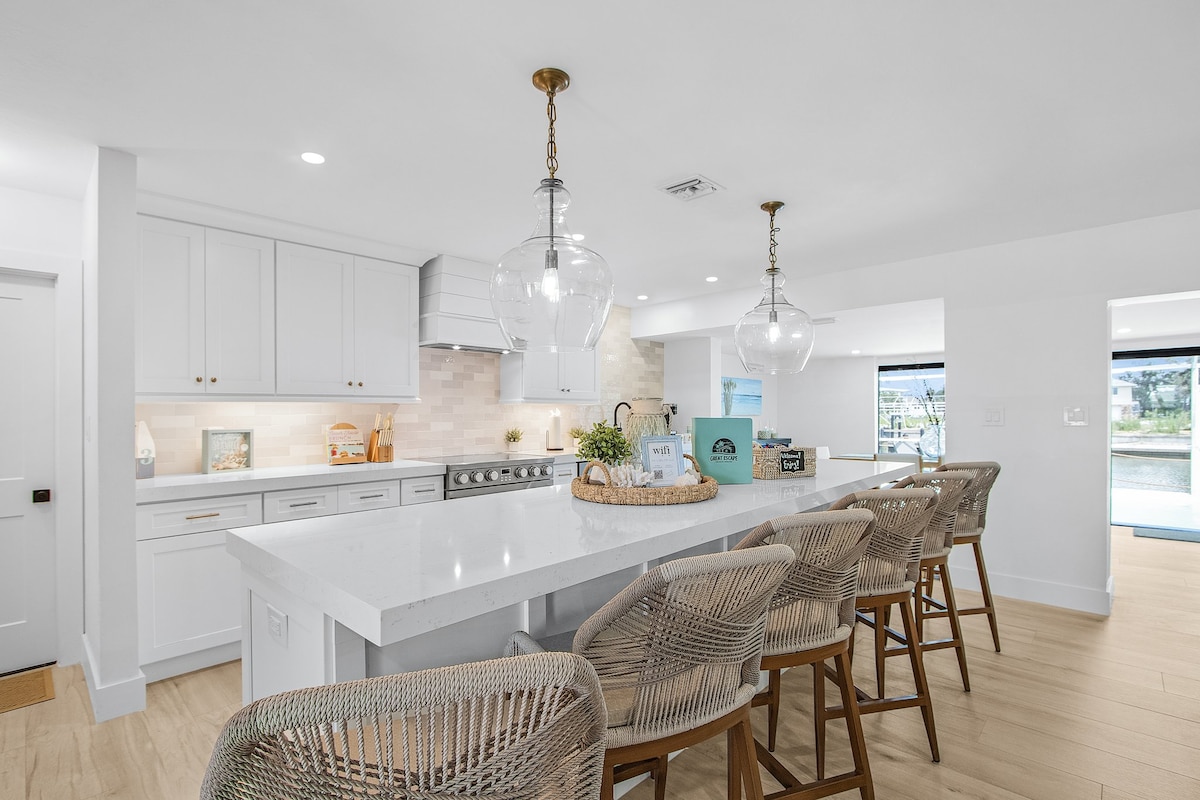 Ngiyakwamukela e-Mullock Creek iphupho le-Boater! Ukubukwa kwaseNingizimu-ntshonalanga kuqhayisa ngokushona kwelanga okuhlaba umkhumbi obheke emseleni kusuka egcekeni elingemuva elivulekile, imizuzu nje ukusuka ekuthengeni nasekudlela e-Coconut Point, nase-Gulf Coast Town Center. Leli khaya elihle le-Key West liye lagcinwa kahle futhi lavuselelwa elinendawo yokungena enhle yangaphambili, ikhishi elinakho konke, igumbi lokuphumula elivulekile, igumbi lokudlela, i-Wi-Fi, indawo yokungena eyenzelwe izivakashi kuphela enokufinyelela egalaji elivulekile, enefenisha ephelele nendawo yokubhukuda yangasese.