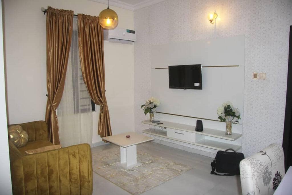 Welcome to David's Court Short Let Apartments! We offer 24 hrs power supply, free wi-fi, a swimming pool, gym, football court, free cleaning services and free parking in a very serene estate.