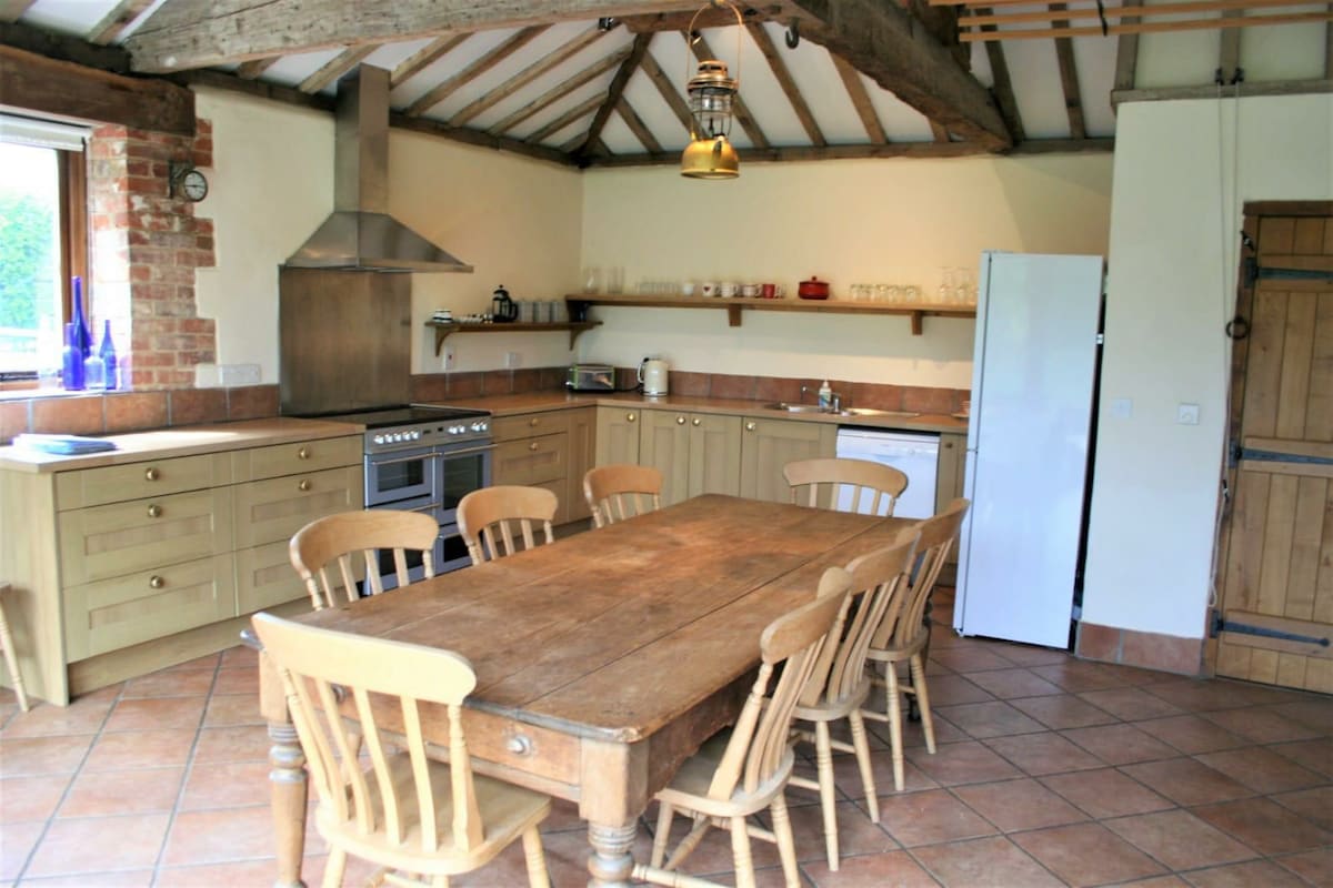 I-Blue Tile Farm Barn iqala ku-1750, inikeza indawo yokuhlala kanokusho. Indawo yokuhlala eyinhloko izuza ophahleni oluphakeme elingu-6m + namafasitela amabili amakhulu. Iphawulwe phansi kakhonkolo ihlanganisa ngokuphelele nemiqadi yamapulangwe avelile. Inhlanganisela yeminyango ye-oki kanye nokuphansi emakamelweni okulala ahambisana namathayili amakhulu e-limestone ezindlini zokugezela ahlanganisa ukwakha isitayela sesimanje esingenasici. Ingadi enkulu evikelekile yangasese enokubukwa okungaphukile engaphezu kwenkundla engama-acre angu-120.