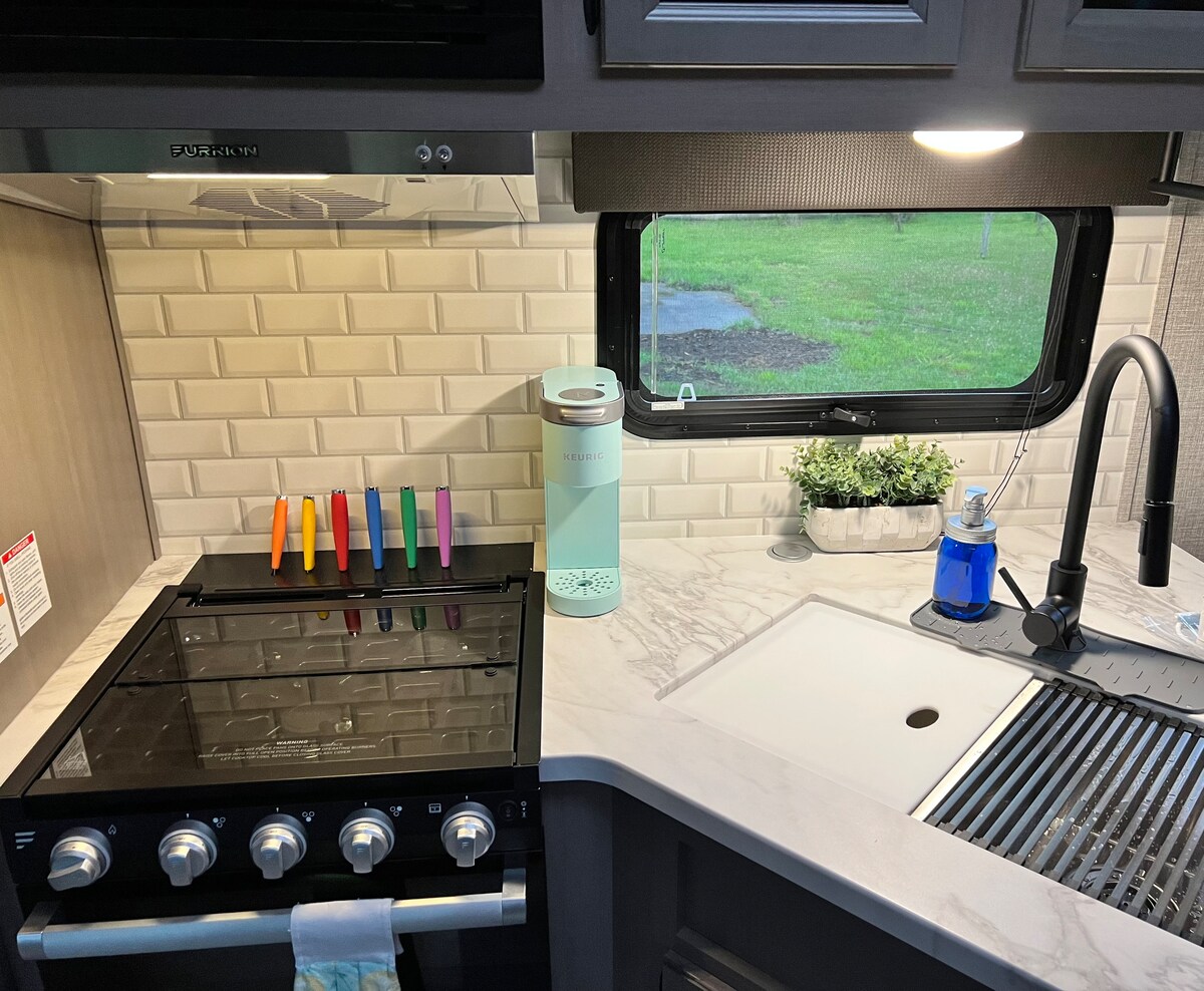 I-RV entsha enesilayidi sokudlela nokuphila ihlanzekile futhi ithokomele, futhi inakho konke okudingayo ukuze uhlale kamnandi: ikhishi eligcwele, indlu yokugezela egcwele, ikamelo lokulala elikhulu elinomnyango wokuvala, indawo yomlilo, i-TV, indawo yepikiniki yangaphandle ne-Weber BBQ. I-RV ibuyele emuva endlini, ngemuva kwamanye amayunithi okuhlala abantu futhi iseduze nenye indawo yokukhempa. Ihlezi ngemuva kwegalaji elikhulu futhi iseduze nenkukhu egijima endaweni evulekile, kodwa kunephrayivesi enkulu ngangokunokwenzeka endaweni yokukhempa.