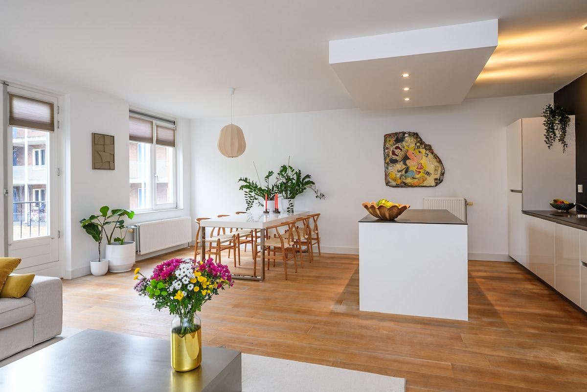 Ifulethi liseduze nebanga lokuhamba ngezinyawo ukusuka esiteshini sesitimela i-Almere Centrum, imizuzu engu-20 ukusuka e-Amsterdam ngesitimela. Yifulethi elivulekile elingu-87m2 eline-balcony evulekile futhi linakho konke. Kunamagumbi angu-3: igumbi lokuphumula/ikhishi, ikamelo elikhulu, nehhovisi elingasetshenziswa futhi njengekamelo lesibili. Ngaphezu kwalokho, ifulethi linethoyilethi elihlukile negumbi lokugezela. Sinikeza izivakashi izindlela zokupaka zamahhala. Zizwe usekhaya!
