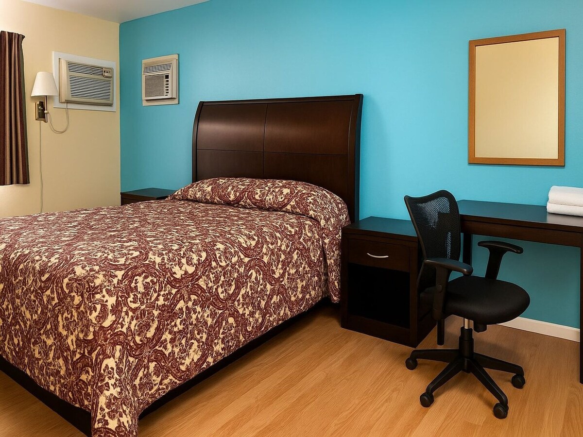 Jabulela ukuhlala okunokuthula, nokuphumula e-Alley House Getaway yethu encane yabantu abangaba ngu-3. Yifulethi elincane elinekamelo elilodwa elinombhede omkhulu, i-loveseat eyenza umbhede ongamawele uma kudingeka, nama-tv angu-2 afakwe odongeni. Ikhishi elincane linesiteshi sekhofi, ifriji/ifriji, indawo yokupheka ephathekayo, ne-microwave. Amakhabethe agcwele zonke izidingo zakho zokupheka. Ifulethi lihlanganisa amayunithi angu-2 e-ac/okushisisa ukuze unethezeke kakhudlwana.