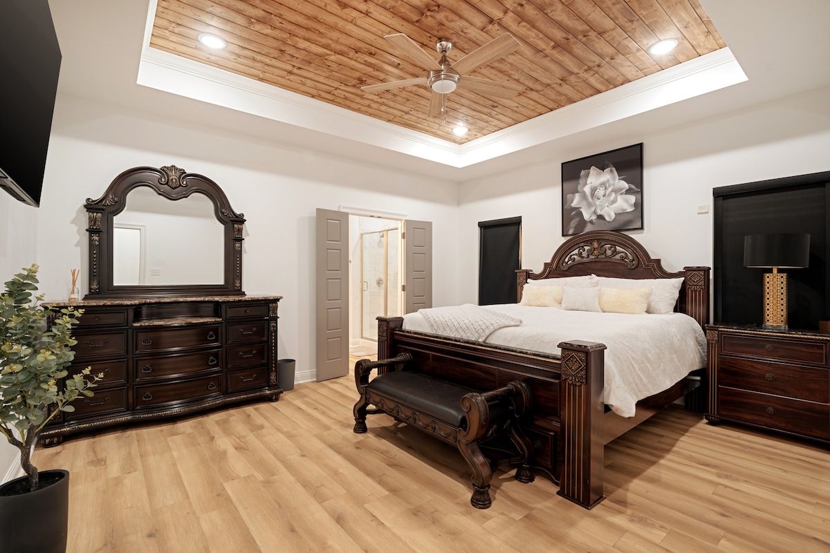 Siyakwamukela ku-Mamie! Ikhaya lesitayela sezingcweti elisanda kulungiswa elisendaweni ephrayivethi yasekhoneni esifundeni sase-Oaks e-Downtown Hattiesburg. Leli khaya eliklanyelwe ukujabulisa, linegumbi lokuphumula elivulekile nelikhangayo, ikhishi elikhulu lokudlela, igumbi le-billiard elilungele imibuthano emikhulu, nendawo eningi yangaphandle yemidlalo yasegcekeni. Inamakamelo okulala angu-4 (1 King, 4 Queen Beds), namagumbi okugezela angu-2.5, i-Mamie iyikhaya elifanele lamaqembu amakhulu noma imindeni. Sibheke phambili ekukubungazeni!
