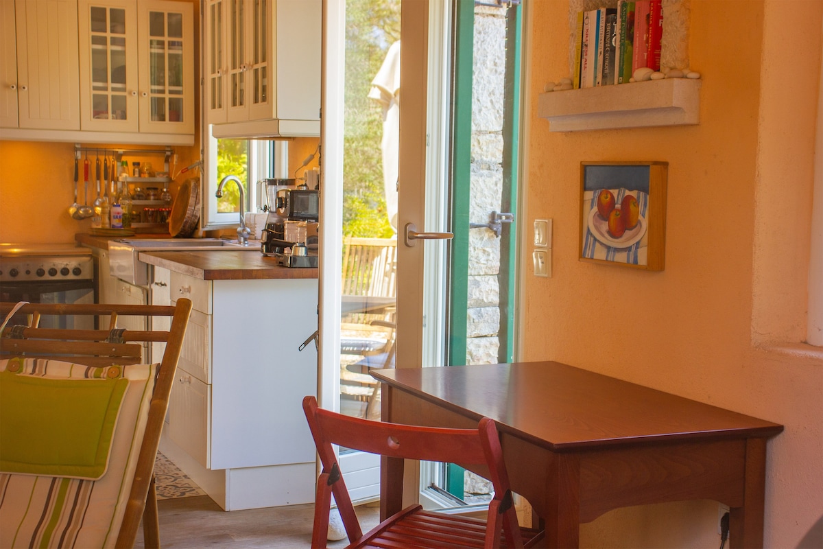 Indlwana yamatshe yesiGreki yendabuko, etholakala emagcekeni omnqumo, engaphansi kwemizuzu engu-10 uhamba uye emzaneni we-Loggos kanye nokuhamba okufushane ukuya emabhishi e-Marmari nase-Kipos. Kukhona ikamelo lokulala elilodwa elikhulu nekamelo elilodwa elincane elinemibhede eyisitezi.
