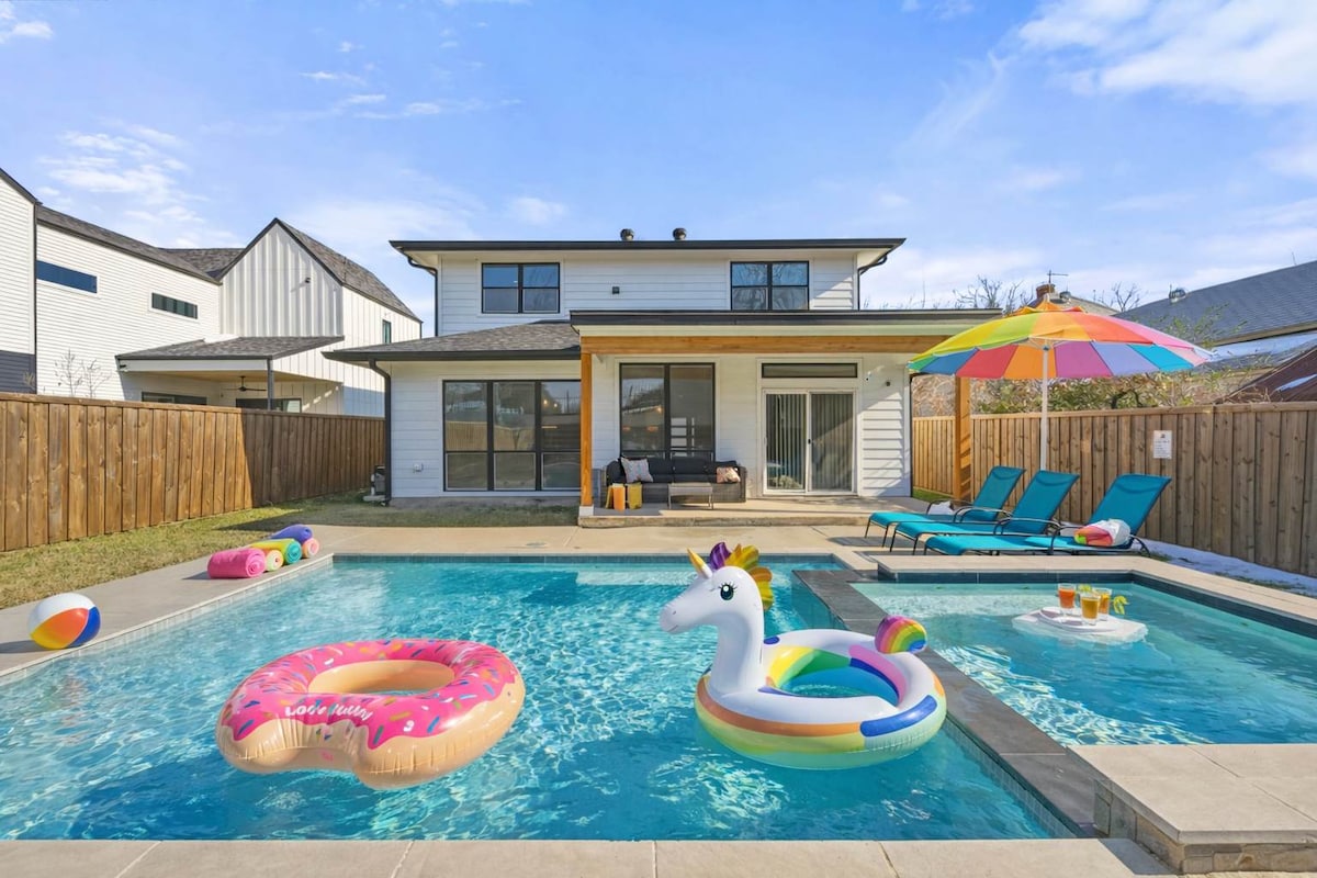 Ikhaya elimangalisayo elingu-5 lokulala e-Dallas elinendawo YOKUBHUKUDA ENAMANZI ASHISAYO NOBHAVU OSHISAYO OMANGALISAYO. Itholakala endaweni ephakeme/ethulile eduze nedolobha. Uhlelo lwasendaweni evulekile lulungele amaqembu amakhulu afuna indawo enkulu yokuhlala nendawo yokuphumula yangaphandle. Leli khaya elihle lendaba elilodwa (azikho IZINYATHELO) eliklanywe kahle futhi lihlotshiswe kahle. Izici super fast 400 mbps WiFi, ikhishi ifakwe ngokugcwele, ibha, itafula lokubhukuda, ukudla for 15, ifenisha ephezulu kanye nezinto zokulala okunethezeka. Ukungena okungenasici kokukhathazeka ngokungena mahhala.