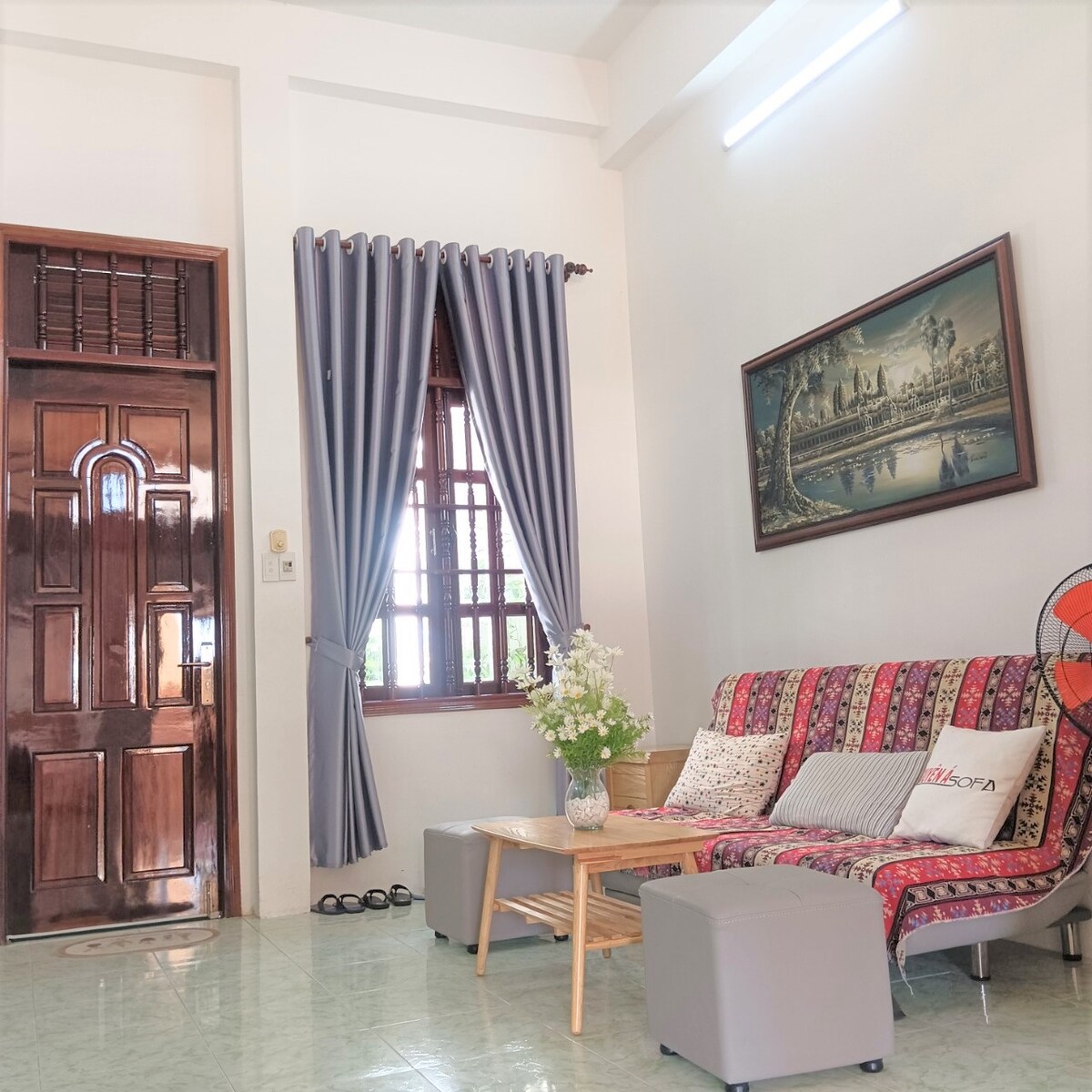 Itholakala emgwaqweni othulile enkabeni yeVung Tau, iNha Gioi 1 - Cham Binh Yen inikeza indawo yasemaphandleni, efudumele neyimfihlo. Yindawo lapho ungakwazi ukubeka eceleni okwesikhashana ukuxokozela kwempilo ukuze uzizwele izikhathi ezinokuthula ngempela. Eduze nolwandle, eduze nemakethe nezindawo zokuzijabulisa, izindawo ezidumile zokungena e-Vung Tau. I-Pillow House inendawo yokupaka eyimfihlo futhi engabizi, engamamitha angu-10 ukusuka endlini. Indawo yokuhlala enakho konke imindeni emincane noma amaqembu abangane (abantu abangu-5-7): amagumbi okulala angu-3, amagumbi okugezela angu-2, igumbi lokuphumula eline-air conditioning, ikhishi, igceke...