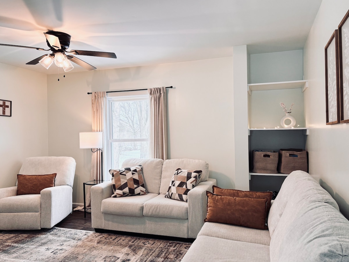 Phumula nomndeni wonke kule ndlu yasemapulazini endala, enokuthula, engamamayela angu-12 kuphela ukusuka e-Frankenmuth, “Michigan's Little Bavaria!” Itholakala endaweni ethulile ngaphandle kwedolobha, ilungele ukuvakasha okuncane. Silangazelela ukukubungaza!