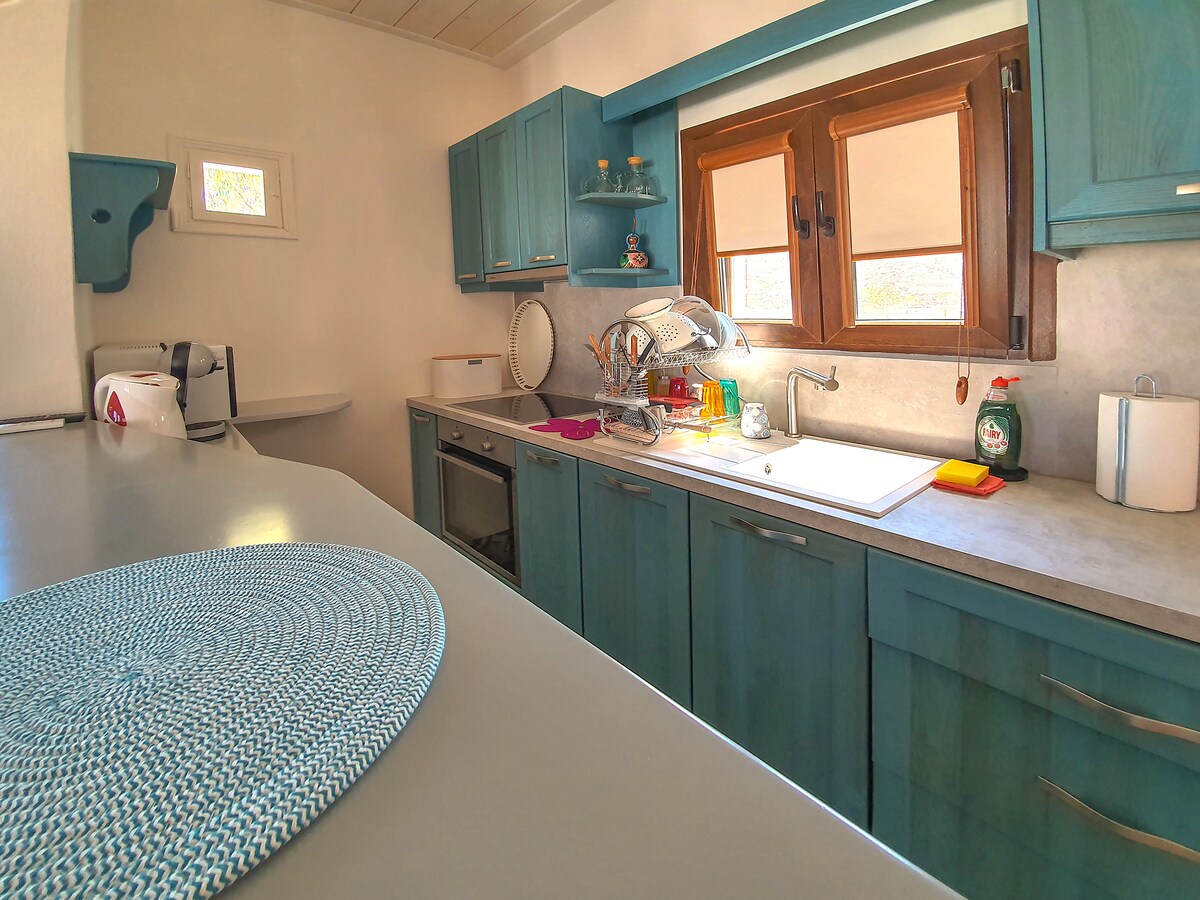 Le ndlu engu-55 sq.m. evumela imvelo itholakala ngemizuzu engu-18 ngemoto ukusuka ethekwini lase-Tinos, ohlangothini olusentshonalanga yesiqhingi, esendaweni yomnqumo futhi eceleni kwendawo enamadwala nokubuka uLwandle i-Aegean. Le ndlu yasepulazini yendabuko iklanywe kabusha ngesitayela esincane. Le ndawo ilungele abantu abashadile abathanda ukuhlala ezweni nobumfihlo. Inikeza ithuba lokuncipha empilweni yedolobha, futhi uphinde uxhumane nokulula nokuzola kwemvelo nokucabangela.
