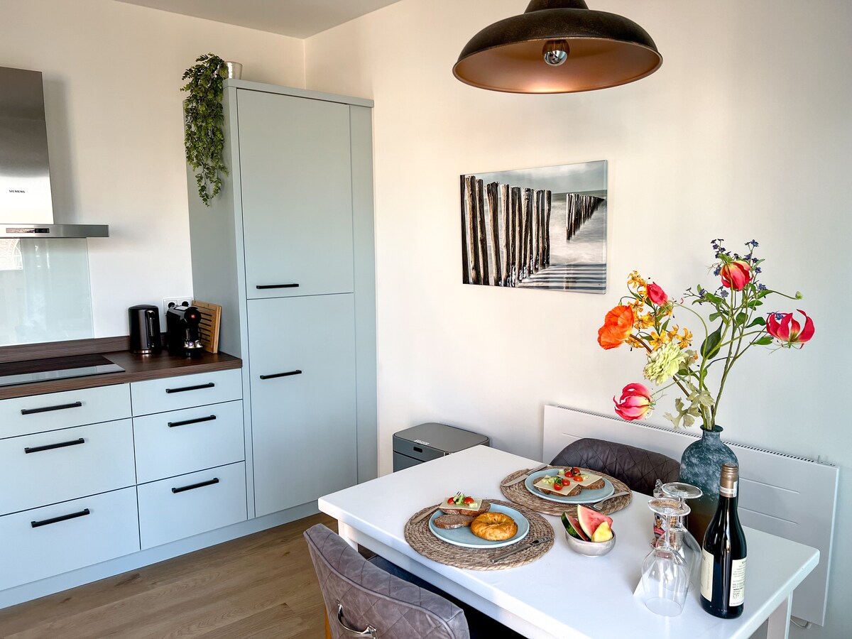 Spacious luxury apartment right on the water at Breskens marina, with spectacular views of the Westerschelde estuary and harbor. Relax in your armchair and watch yachts, ships, and seals on the sandbanks. In summer, enjoy the sunrise and stunning sunsets from the living room or terrace. The beach, restaurants, and Breskens center are within walking distance – the perfect place for a relaxing seaside stay!
