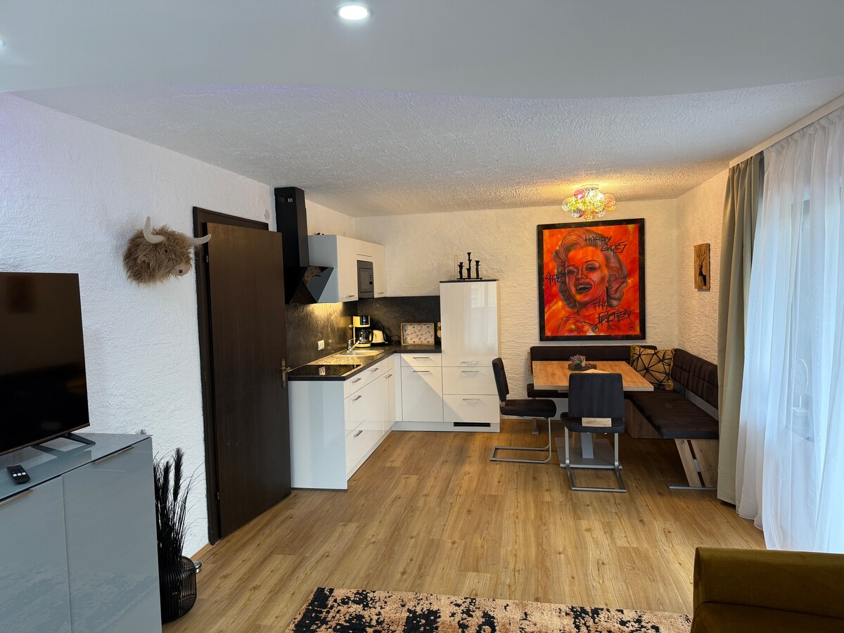 Ifulethi elihle le-penthouse ngesitayela sesimanje se-alpine ku-Tefelder plateau. Ifulethi elithokomele, elithulile esitezi sokugcina lenzelwe abantu abangaba ngu-4 ngokunethezeka. Inendawo yokuphumula ekhanyayo enekhishi lesimanje elinakho konke, amakamelo amabili okulala, izindlu zokugezela ezimbili, ukushisa phansi, i-Wi-Fi yamahhala kanye nethala elikhulu kakhulu langasese. Ukusuka lapho ungajabulela ukubukwa okumangalisayo kwezintaba nesigodi sase-Inn, kokubili ehlobo nasebusika.