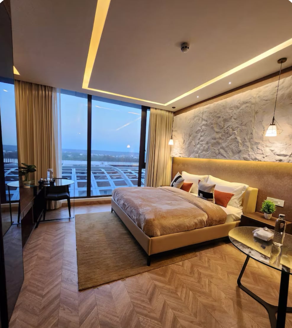 Welcome to Royalty by Skyview at Supernova! Perched on the 39th floor of one of India’s tallest mixed-use buildings, this modern studio apartment offers a stunning retreat high above the city. With breathtaking panoramic views of the Yamuna River, Sunset and the sparkling city lights. Well ventilated with morning sunlight. Our space is ideal for couples, business clients, solo travellers, or anyone seeking a serene escape.
