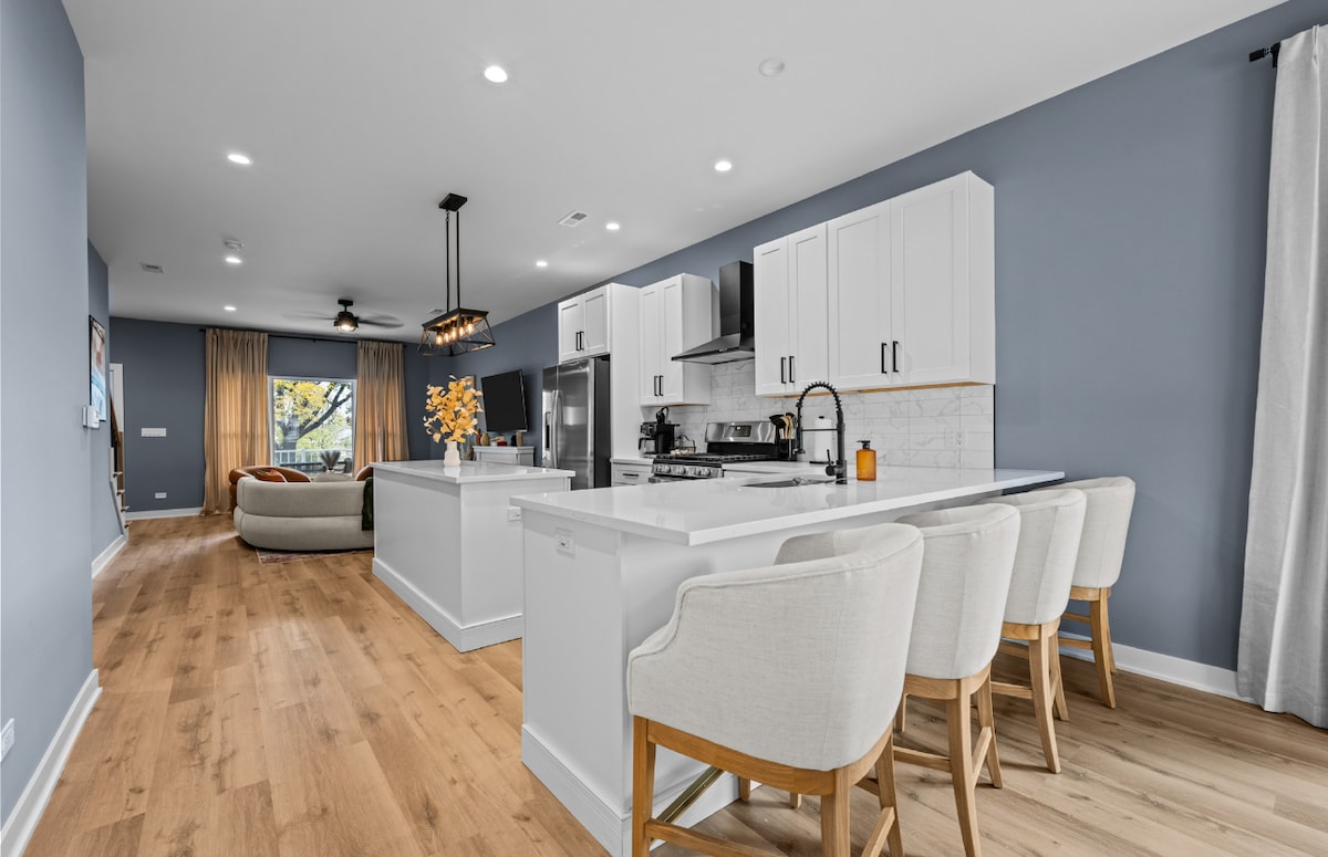 Isilinganiso esingu-5 kokungu-5, ukuphawula okungu-3Indawo entsha, evulekile, yesimanje-ungaya ngezinyawo e-DTWN Geneva, IL!