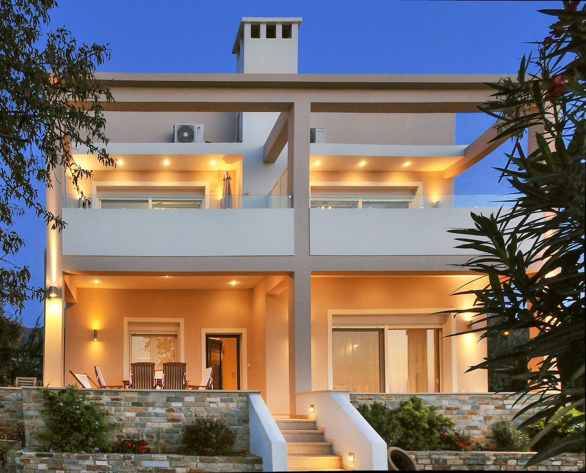 Indlu yesimanje enendawo enhle, eyakhiwa ngo-2004, enezakhiwo zendabuko zamaGreki (amatshe namapulangwe). Kuqhele ngamamitha angu-150 ukusuka ebhishi elidume kunawo wonke kulesi siqhingi (ibhishi legolide), indlu (i-villa) ilungele imindeni efuna ukunethezeka nokungcebeleka kanye nobuhle nokuzwana.