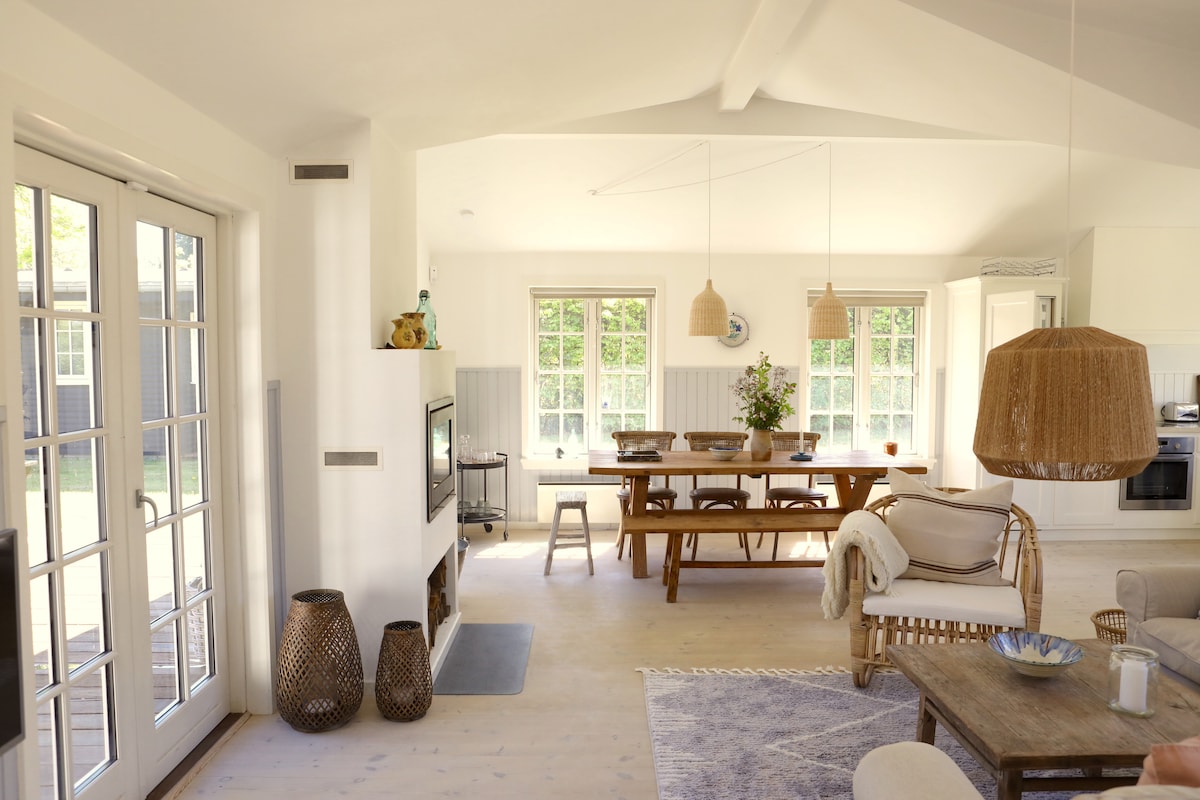 Njengoba inesikhala esiningi, le ndlu enhle kakhulu “eyi-hyggeligt” yasehlobo inamakamelo okulala amahlanu, okuhlanganisa indlu yezivakashi ehlukile enegumbi lokugezela eliphelele. Kuyikhaya elisha elinobuhle obuhle, elisebanga elifushane lokuhamba ngezinyawo noma ngebhayisikili ukusuka ebhishi nasedolobheni i-Hornbæk. Izinto ezibalulekile ezengeziwe zihlanganisa i-sauna esakhiwe kabusha eneshawa yangaphandle.