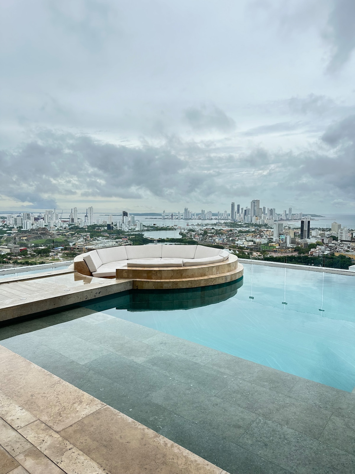 Discover elevated luxury in our 34th-Floor Ocean View Suite — part of the Iconic Portfolio, known for premium design, professional hosting, & unforgettable guest experiences. Wake up above Cartagena’s skyline with panoramic ocean & city views from the condo's floor to ceiling windows & enjoy drinks on it's huge balcony while enjoying stunning sunsets! You'll LOVE: ✨Modern design with A/C in every room ✨Maid & Concierge ✨King bed, premium mattress, linens & pillows for a 5 star quality sleep