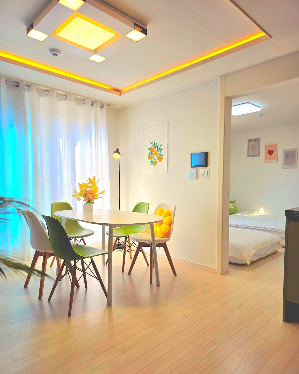 Sawubona, lokhu yi-VIVA STAY. Le yindawo yokuhlala enothando lapho ungakha khona izinkumbulo ezimnandi nomndeni wakho, abangane, nabangane e-Seoul. Njengoba kuyisakhiwo esisha ngo-2023, sihlotshiswe ngaphakathi ngendlela ecocekile nenesitayela ngombala omhlophe nangezinto ezithinta inhliziyo. Itholakala endaweni yokuhlala ethulile, ngakho ungazizwa ukhululekile ngisho nasedolobheni. Le ndawo yakhiwe ngekamelo lokulala elihlukile, igumbi lokuphumula, nekhishi. Kuhle nasekuhlanganeni okuncane, uhambo lwezithandani, nasekuphumuleni nabangane. Kunezitebhisi ezimbili zesitimela ezingaphansi kwemizuzu engu-10 uma uhamba ngezinyawo, okwenza ezokuthutha zibe lula kakhulu. Eduzane, izindawo zokudlela, amathilomu, izitolo ezithengisa izinto ezidingekayo, nezimakethe ziseduze, ngakho akukho ukuphazamiseka phakathi nokuhlala kwakho. Indawo yokuhlala entsha, enothando eqondiswa umbungazi, Ukuze izivakashi zihlale kahle futhi zijabule njengasekhaya lazo Sinaka kakhulu inhlanzeko nesevisi. Jabulela imihlobiso yangaphakathi nomoya oshukumisayo oguqukayo njengoba isizini sishintsha.