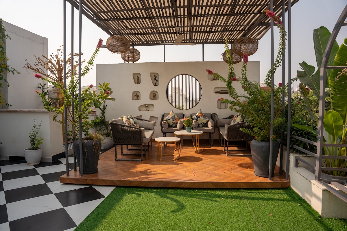 Indawo yokuhlala ezolile, eyenzelwe ngokucabangela enethala nendawo yokungena engadini — ilungele abahambi abahamba bodwa, ochwepheshe abasebenzayo & imibhangqwana. I-Wi-Fi ✔️ esheshayo + indawo yokusebenzela ✔️ Umbhede othokomele negumbi lokugezela elihlanzekile eliphrayivethi ✔️ Ikhishi elinakho konke ✔️ Indawo yokuhlala ethulile, kodwa ixhunywe kahle 📍Golf Course Road I-Closet metro : Sector 55–56 Rapid ⏱ Amabanga ayinhloko: • Romeo lane - imizuzu engu-2 • Ihabhu Lezinto Zobuchwepheshe – imizuzu engu-15 • Medanta – imizuzu engu-15 • Isikhumulo sezindiza se-IGI – imizuzu engu-40 🌿 Ivulande elivulekile 🚗 Indawo yokupaka iyatholakala