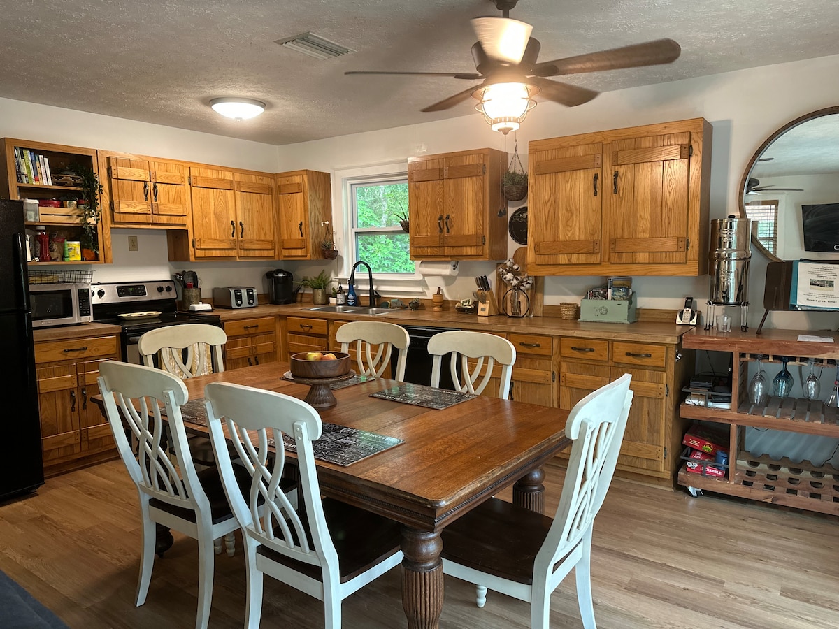 Zipholele kuleli khaya elikhulu elinamagumbi angu-3/2BA elisendaweni engu-5 acres, elizungezwe yizihlahla nemisindo yemvelo. Ikhaya le-Spring Hideaway lilalisa izivakashi ezingaba ngu-10. Jabulela ukusa okuthulile kuvulandi ohlungiwe, kusihlwa ngasendaweni yokubasa umlilo, nethuba lokubona izinyamazane nezilwane zasendle zasendaweni. Nakuba uyimfihlo, usemizuzwini engu-8-12 ukusuka e-Downtown High Springs, e-Ginnie Springs, e-Blue Springs, nase-Poe Springs. Udinga indawo eyengeziwe? Indlu encane enhle esendlini efanayo nayo iyatholakala: airbnb.com/h/sprighideaway2