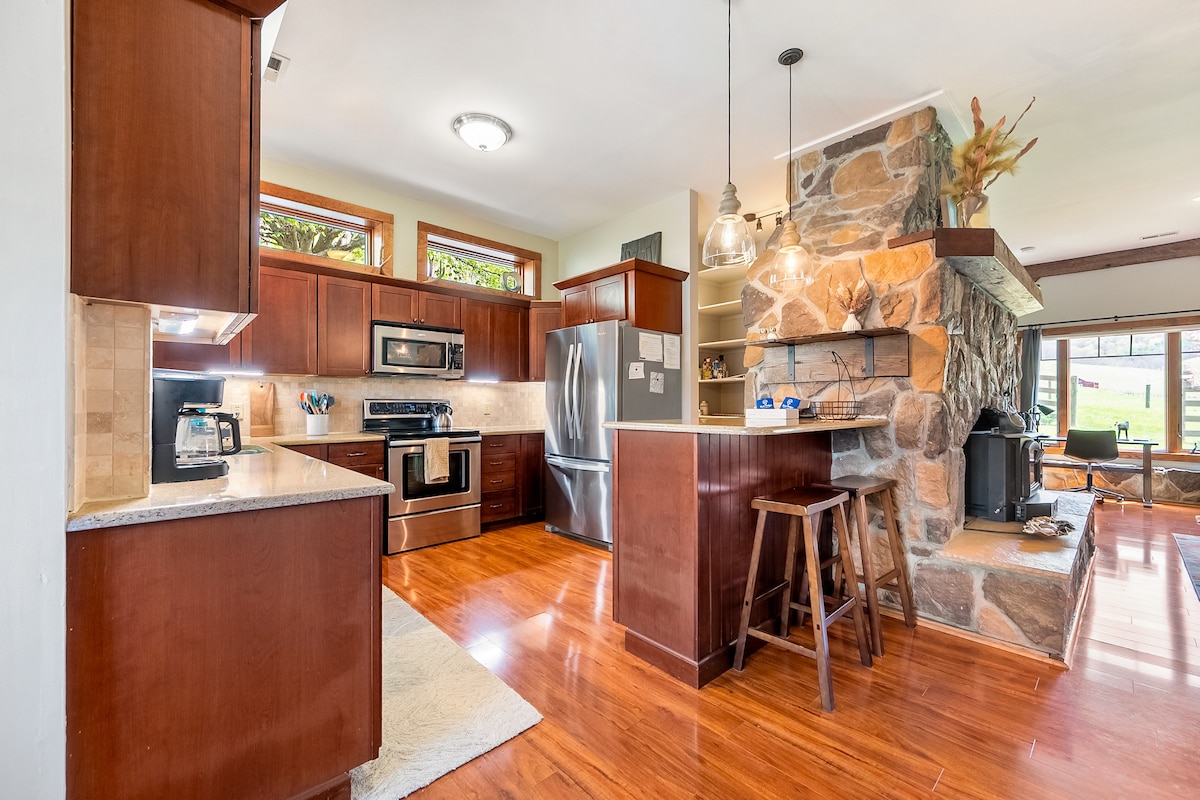 Njengendlu yasepulazini yesimanje kodwa encane kakhulu, uzizwa usekhaya! Ikhaya lethu elincane lingasendaweni engu-0.4 hektare ebheke i-Blue Ridge Mountains yase-Southwest VA. Itholakala phakathi nedolobha lase-Blacksburg (imizuzu engu-10) ne-New River (imizuzu engu-10), kunezinto eziningi ongazenza futhi uzihlole. Amakhilomitha ambalwa ukusuka ku-Prices Fork, eduze negesi/ukudla okwamanje phakathi kwe-VT ne-RU! Abanikazi baqhuba ibhizinisi lezihlahla lendawo elengamele indlu. *Inani elenzelwe izivakashi ezingu-2. Faka Isivakashi $30/ubusuku. $50/silwane esifuywayo ngasinye