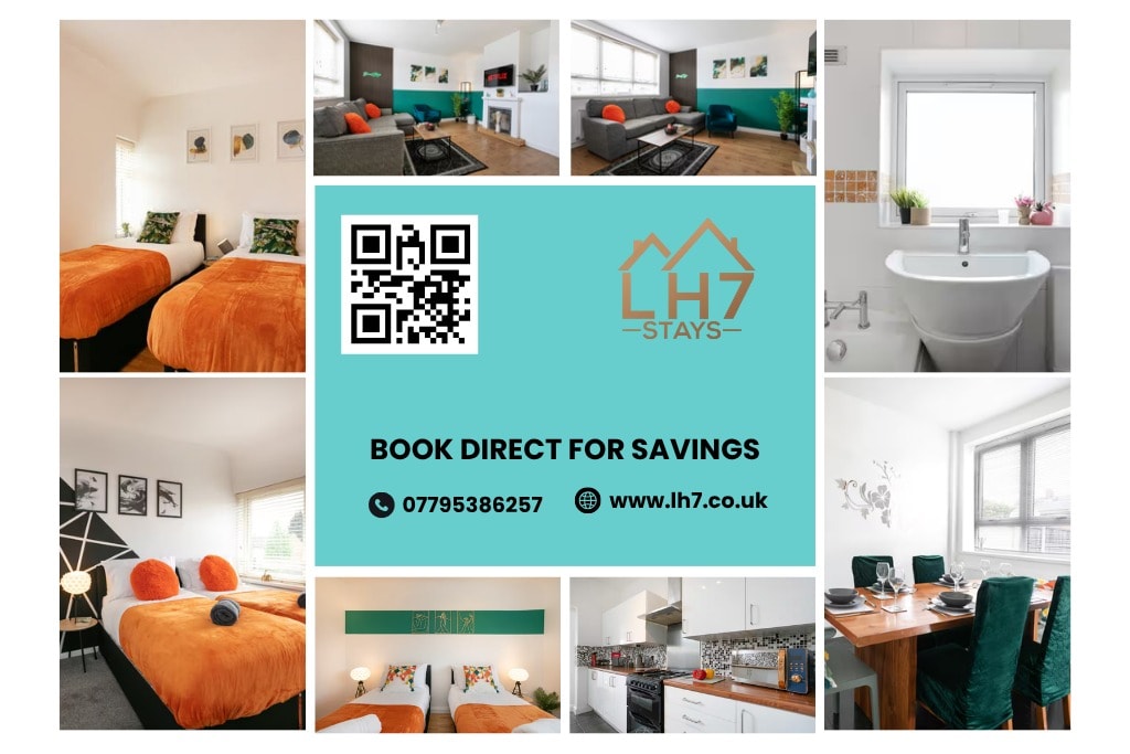 ✉Save 20% on a 7-Night Stay ✉ ★Longer Stay ➞ More Savings 🏳LH7 Stays🏳 ● 4 Bed House ● Sleeps 8 Guests ● Bedroom 1 –King Zip-Link/ 2 singles ● Bedroom 2 –King Zip-Link/ 2 singles ● Bedroom 3 –King Zip-Link/ 2 singles ● Bedroom 4 –King Zip-Link/ 2 singles ● 2 Full Bathrooms ● Fully Equipped Kitchen ● Free WiFi ● Free on Street Parking ● Close to Shops, Cafés and Transport ★Perfect for families, groups, Contractors or business travelers needing a modern and spacious stay in Leicester.