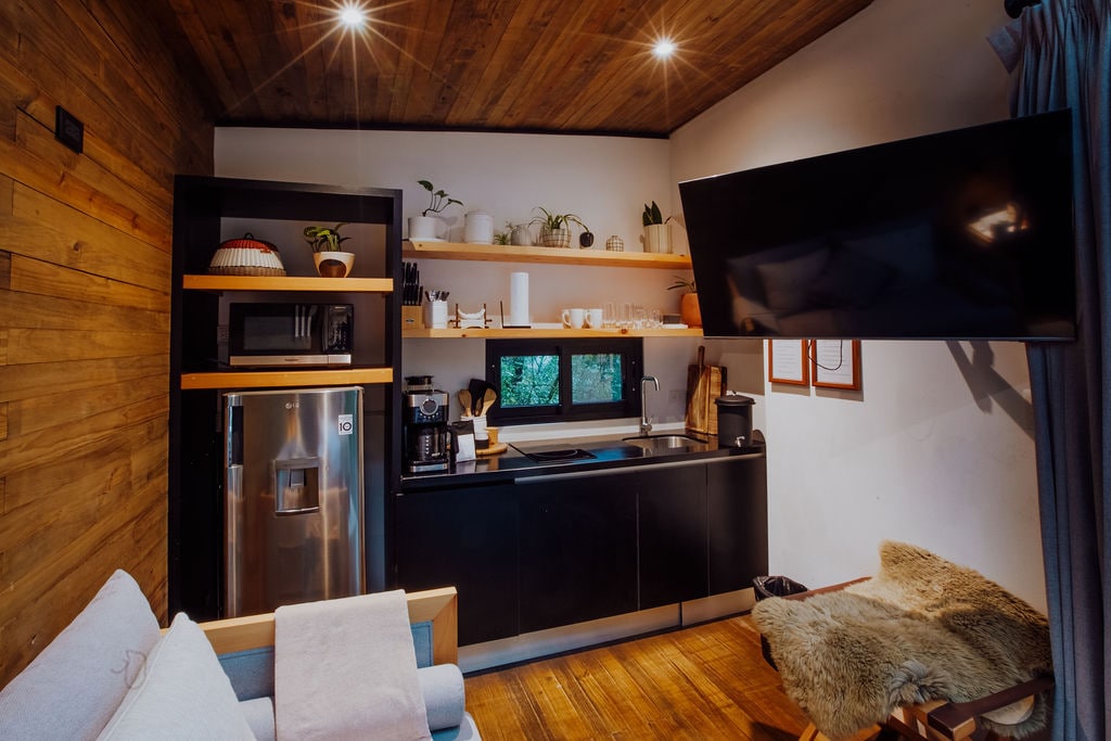 Indlu Yokunethezeka Eyingqayizivele Nesimanje e-Guatemalan Highlands enomuzwa wokuntanta phezulu esibhakabhakeni (1700m) -Izici zoxhumano lwe-Starlink olungavinjelwe namahora angu-24 kagesi ongaphukile (i-lithium/i-solar) -Awo wonke amafasitela avuleka ngokugcwele ukuze abingelele ukubukwa kwama-vulcanos angu-5 kanye “nechibi elingenamkhawulo” “lomdwebo” oshintsha njalo -Amanzi omthombo ahlungiwe empompini -Ubhavu wamanzi ashisayo wegumbi lokugezela wokokuzithokozisa komnyango ovaliwe noma ovulekile -12 m2 cantilevered hammock deck-net for stargaze & relaxation