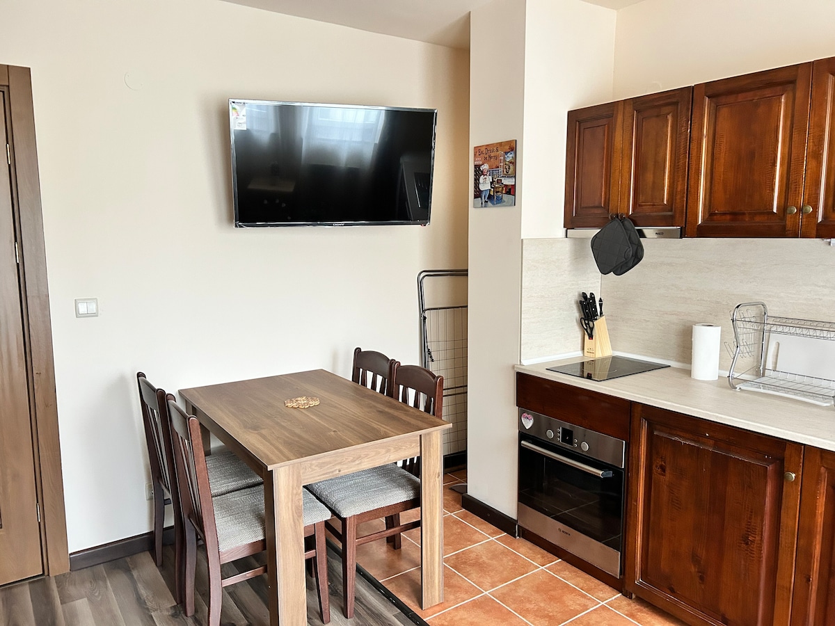 Siyakwamukela efulethini lethu elisha likanokusho e-Bansko, eliphakathi kwezintaba zase-Pirin. Gxila endaweni yokuphumula eyingqayizivele egqugquzelwe umhume ehlotshiswe ngamatshe asemaphandleni namapulangwe afudumele. Umbhede ombaxambili uthembisa ukunethezeka okukhulu, kuyilapho izibani ezifihlekile ze-LED zenza indawo enhle kakhulu. Jabulela ingxubevange yemvelo nenhle, nezindawo ezinhle ze-Bansko 's ski resort. Indawo yakho yokuvakasha esentabeni ilindile, lapho yonke imininingwane ihlebeza khona ukuzola nobuhle