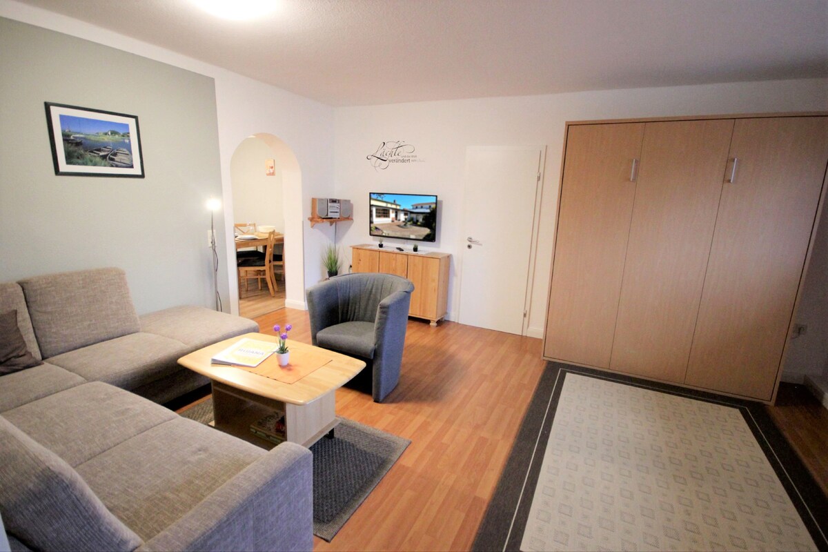 Siyakwamukela efulethini lethu elithokomele e-Göhren esiqhingini esihle sase-Rügen! Ifulethi lethu lilala abantu abangafika kwabangu-4! Inekamelo elihlukile, igumbi lokuphumula elivulekile elinombhede kasofa kanye nekhishi elinakho konke. Uvulande wokujabulela umoya ohlanzekile. Indawo yokupaka itholakala mahhala ngokuqondile phambi komnyango. Ibhishi, isuphamakethe, indawo yokubhaka nezindawo zokudlela ezithokomele ziqhele ngezinyawo.