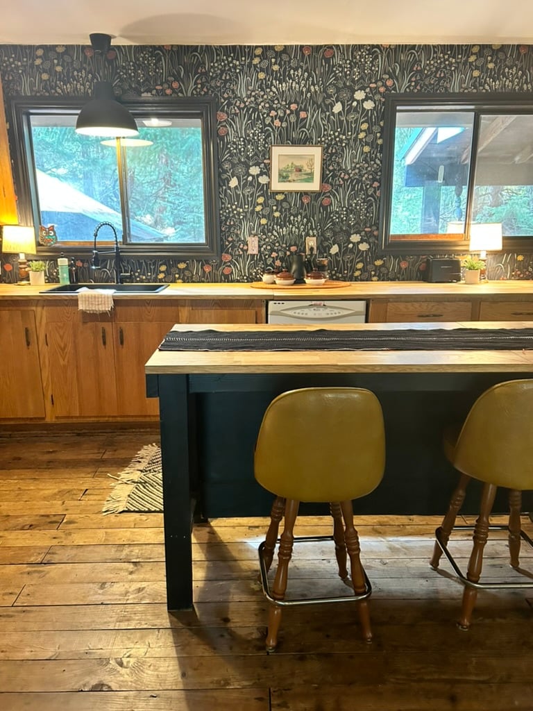 Indlu eyakhiwe ngamapulangwe encane, ethokomele engaphezu koMfula i-White Salmon, imizuzu nje ukusuka edolobheni. Jabulela ukubukwa okuphangaleleyo kwezinga elingu-180 kusuka endaweni yakho encane yehlathi langasese noma usebenzise ngokunenzuzo indawo emaphakathi ukuze uhlole konke i-Gorge ekunikezayo. Sisanda kulungisa le ndawo yokuphumula yangasese ukuze sigcine abangane nomndeni bethu abavakashela bekhululekile. Siyajabula ukwabelana ngaleli gugu elincane eliseceleni nani nonke, futhi sibheke phambili ekuqinisekiseni ukuthi uhlala kamnandi! UHeather no-Eli