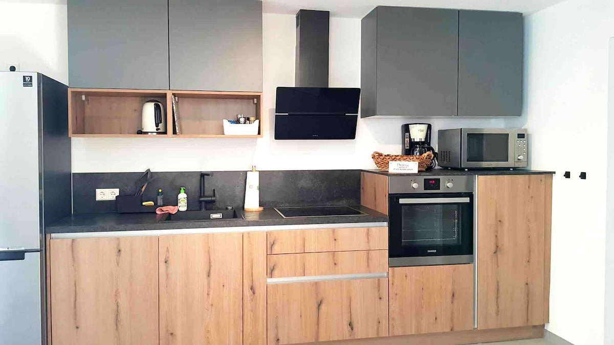 Service: WiFi, self Check-in, smart-TV, Handtücher, Seife, WC-Papier, Geschirr+Besteck, Mikrowelle, Toaster; Waschmaschine, Trockner, E-Auto Ladestation gegen Aufpreis auf Anfrage • die modern ausgestattete Wohnung für maximal 4 Personen liegt Parterre; alle Zimmer sind ohne Stufen oder Treppen erreichbar • TV im Wohn- und Schlafzimmer • Eigener, separater Eingang, Sonnige Terrasse • Voll ausgestattete Küche, Bad mit großer Dusche • geeignet für Paare, Familie, Freunde oder Monteure