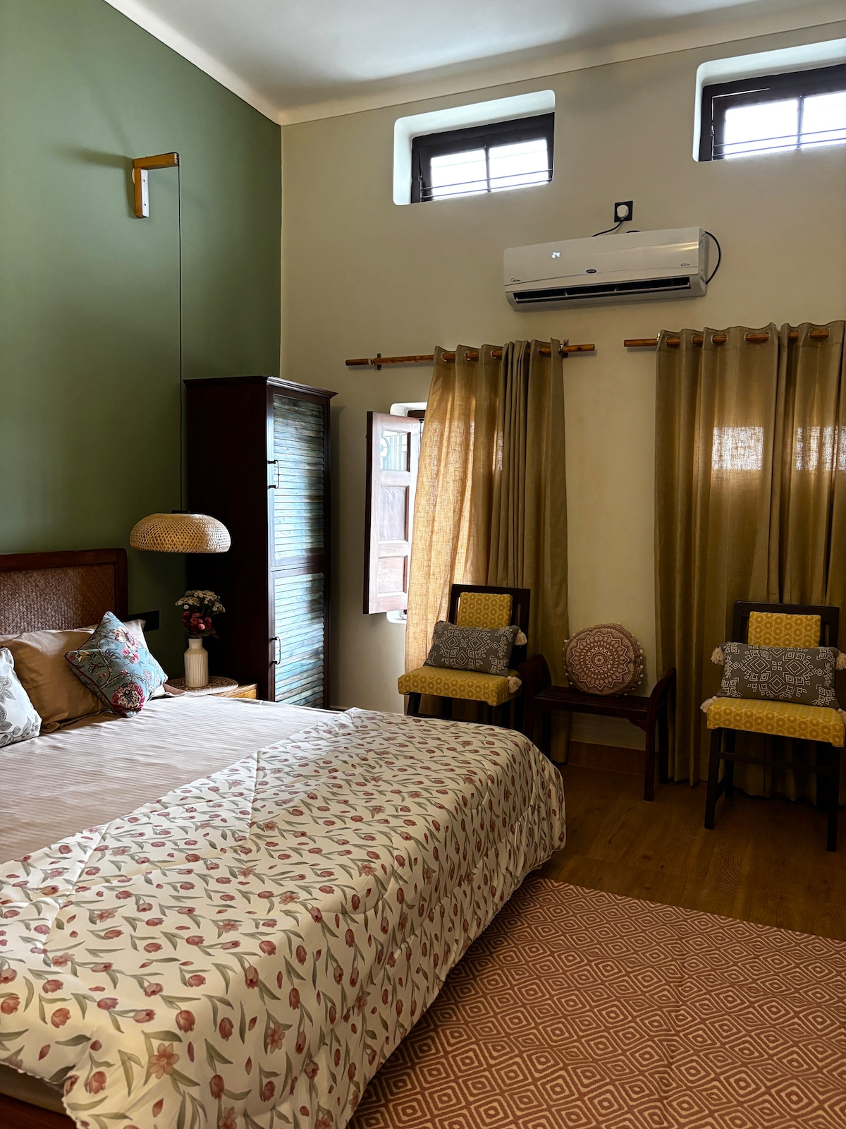 Welcome to The Saryu Vatika Homestay, Ayodhya — a third-generation family home on Rampath, lovingly built in 1990 and newly refurbished for modern comfort. This cozy 4-bedroom, 3-bathroom ground-floor bungalow offers AC rooms, Wi-Fi, Smart TVs, a kitchen for making tea/coffee, and gated parking. Enjoy full home-cooked meals by our in-house cook on nominal charges. With a 24×7 caretaker and close proximity to Ayodhya Airport, it’s your perfect home away from home.
