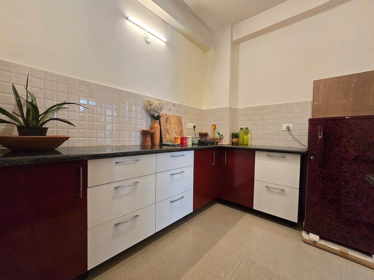 Indawo yokuhlala enhle, enokuthula, enombhede omkhulu oyi-super king oyedwa nosofa oyi-2 🏠 oyi-1km kuphela ukusuka e-prem mandir🛕 Ilungele imibhangqwana, umndeni nezihambi Ifulethi elikhulu elivulekile eliyiklasikhi elinosayizi omkhulu elinegumbi elilodwa lokulala elisendaweni evikelekile enezokuvikeleka 24×7. Ikhishi elingokoqobo elifulethini lokudla okusha kwe-saativ Hlola eduzane I-Keli Kunj marg (2km) I-Prem mandir (2.9km) Ithempeli lase-Bakey Bihari (5.3km) Jabulela indawo kanokusho, ehlanzekile futhi ethulile kakhulu yokuhlala isikhathi eside nesifushane enokubukeka okuhle kokuphuma kwelanga okuvela kuvulande🌅