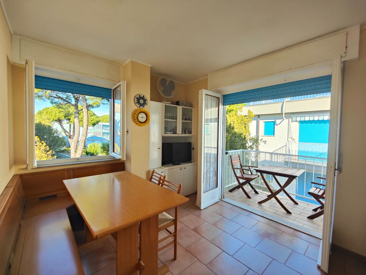 Ifulethi Elijabulisayo eline-Private Terrace, i-Blow from the Sea! 💎 Zivumele unqotshwe yileli fulethi elilungisiwe, eliklanyelwe inhlalakahle yakho. Igumbi lokuphumula elithokomele elinombhede olala abantu ababili ne-TV ye-SAT, ikhishi elisebenzayo, igumbi lokugezela elikhanyayo nethala elimboziwe lapho ungasungula khona izinkumbulo ezingenakulibaleka. I-air conditioning nendawo yokupaka ephrayivethi elula (ukukhanya okungaphezu kuka-4.8M) kukulindile. Njengoba ligxile endaweni yabahamba ngezinyawo e-Grado Pineta, ibhishi liqhele ngemizuzu engu-2 uma uhamba ngezinyawo.