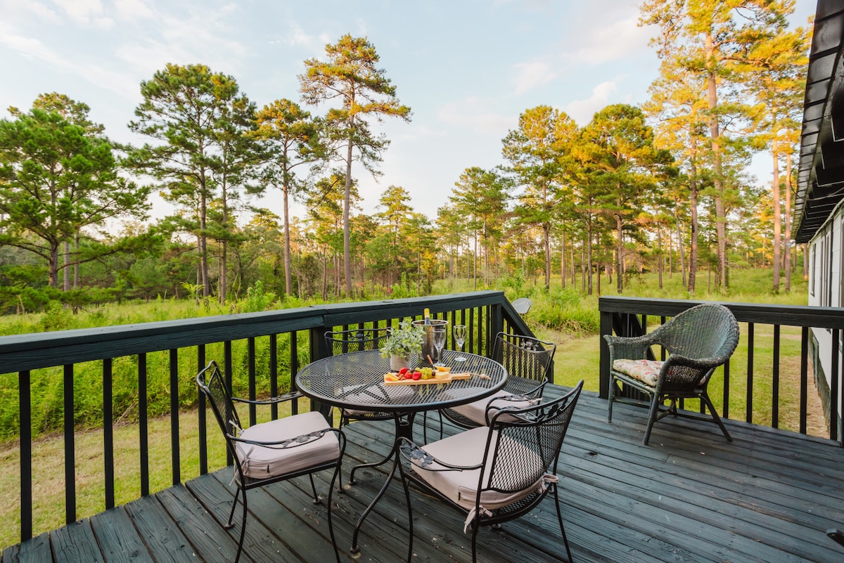Balekela endlini yethu eyakhiwe ngamapulangwe epholile enkabeni yemvelo kuma-acre angu-33. Jabulela ubumfihlo nokuzola okukhulu, ngenxa yesango lobumfihlo, njengoba ubheka idlelo elihle. Itholakala emizuzwini engu-10 ukusuka e-Thomasville nase-Cairo, imizuzu engu-35 ukusuka edolobheni eliqhakazile lase-Tallahassee, futhi ihora kuphela ukusuka emadolobheni abukekayo ase-Valdosta nase-Albany, indlu yethu eyakhiwe ngamapulangwe inikeza inhlanganisela ephelele yokufihla nokulula. Kukho konke okudingayo, le ndawo yokuphumula iyindawo yakho yokuvakasha enokuthula.