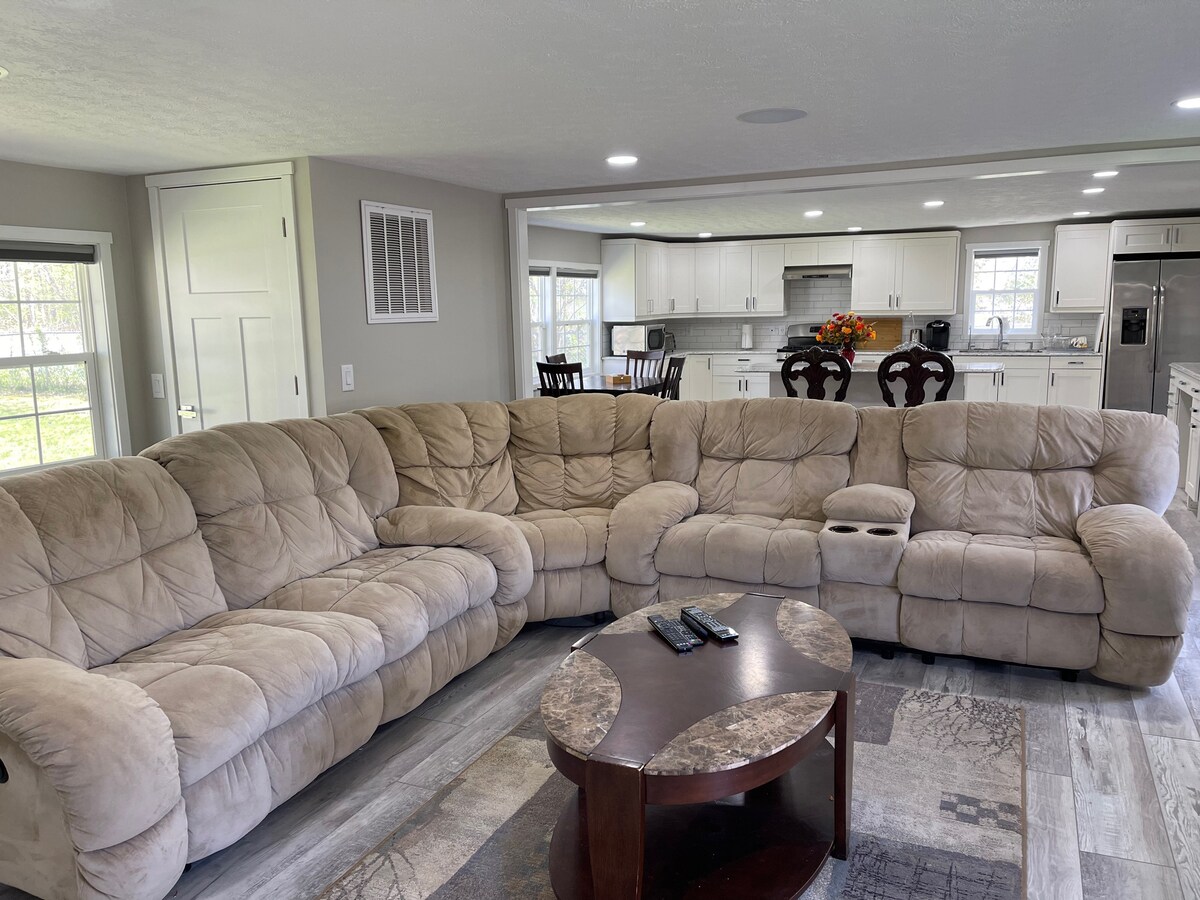 Ngcebeleka futhi ungcebeleke nomndeni wonke!Vula futhi ujabulele indawo yethu ethulile nephephile enezindawo ezinhle zomfula kulolo hambo lwasebusuku! Amagumbi okulala angu-4 nezindlu zokugezela ezingu-2 anekhishi elinakho konke okudingekayo nezindawo zokuhlala ukuze ubukele imibukiso namafilimu owathandayo. Jabulela ukubukwa komzila usendaweni yokosa igesi njengoba ulungiselela ukudla okumnandi nomndeni. Ngemva kokudla okuhle, yenza izinkumbulo ngomdlalo webhodi/wekhadibhodi Eduze nezitolo zokudlela ezinhle nesibhedlela eduze.