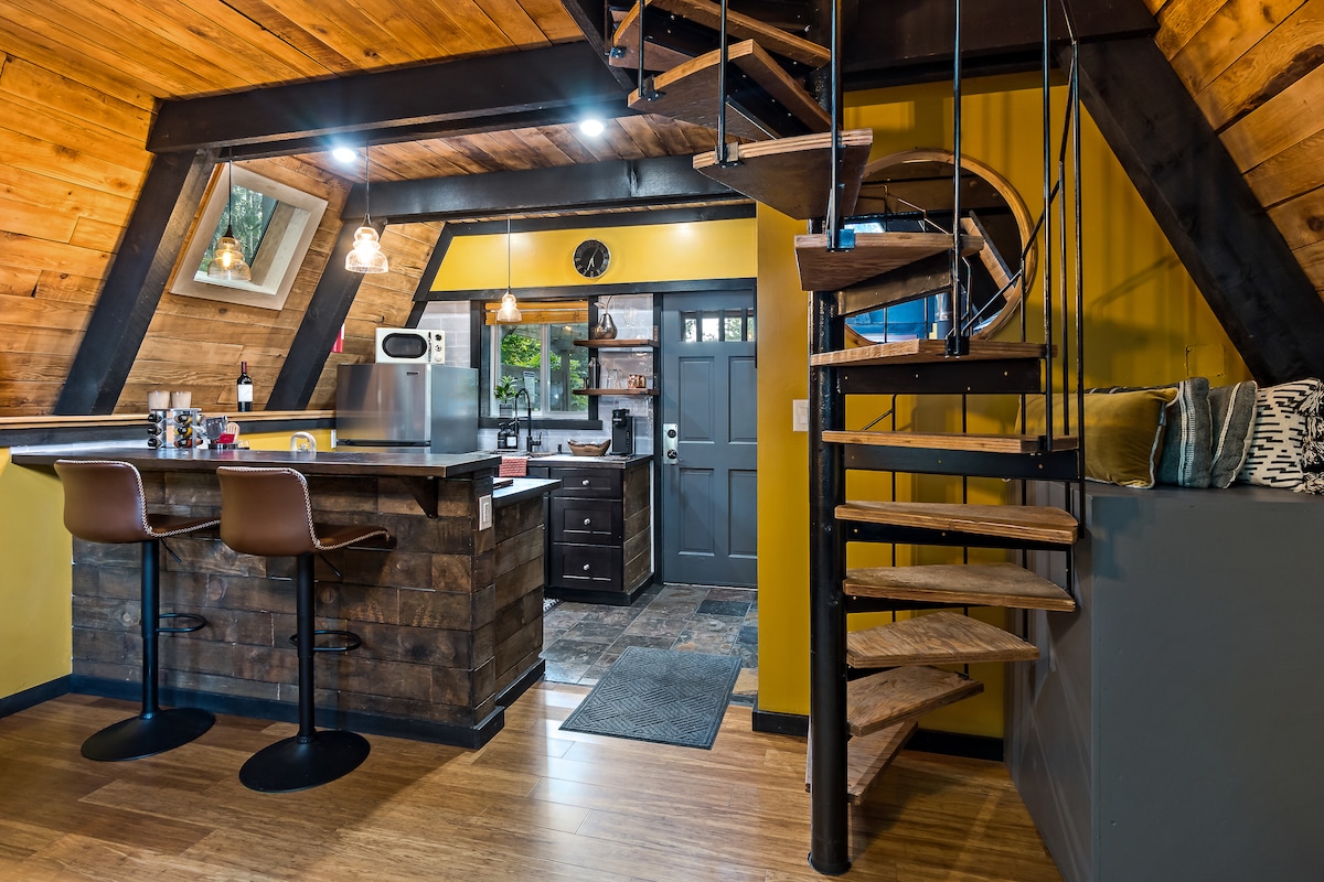 Indawo Yokuvakasha Ethokomele engu-A-Frame~Ubhavu Wamanzi Ashisayo~I-firepit~Iphupho Lange