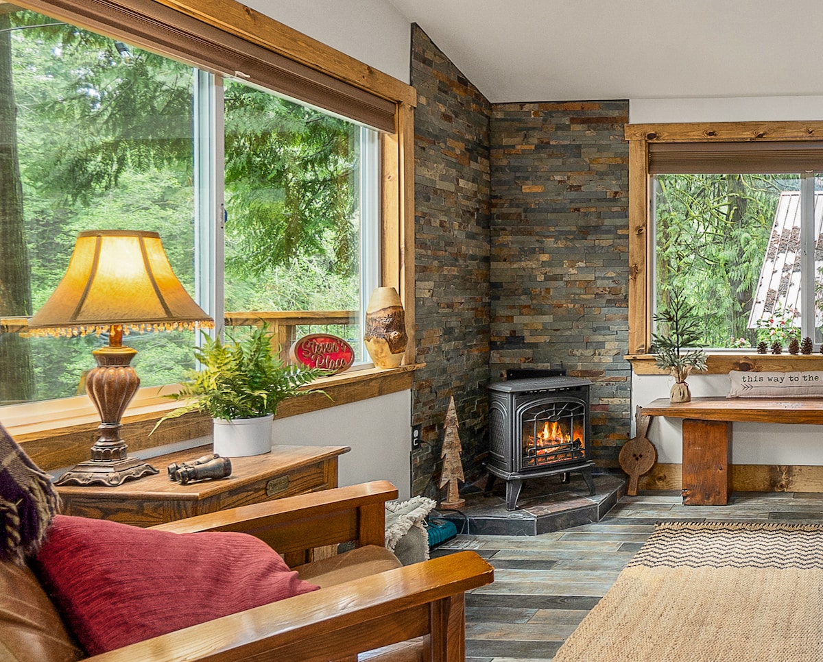 Khululeka, phumula, futhi ujabulele ukubukeka okuhlanzekile koMfula odumile wase-Sillaguamish. Le ndlu eyakhiwe ngamapulangwe ethokomele iyindawo ekahle yokuvakasha yabathandi bangaphandle. Imizuzu ukusuka e-National Park enakho konke ukunethezeka kwezidalwa ongakudinga. Amasevisi engeziwe ahlanganisa: -> Ikhishi elinakho konke -> Ubhavu Wamanzi Ashisayo -> I-Firepit Yangaphandle -> Indawo Yokubasa Egasini Engaphakathi -> I-inthanethi enejubane eliphezulu, i-smart TV -> Umshini wokuwasha/wokomisa esayithini -> Imizuzu engu-10-30 ukusuka emizileni ethandwayo yokuqwala izintaba, izimbobo zokubhukuda, nezindawo ezidumile zangaphandle zase-Washington