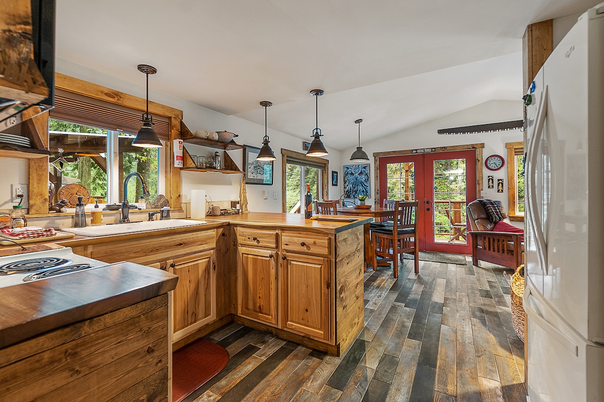 Balekela e-Crystal Cabin, e-Granite Falls - Indawo yakho yokuvakasha ethokomele, ephrayivethi e-Washington's Mountain Loop HWY. Njengoba inezitshalo ezinde njalo nezitebhisi ezisuka e-Canyon Creek, le ndlu eyakhiwe ngamapulangwe elungele izilwane ezifuywayo ilungele abantu abajabulisayo, abahamba ngezimpelasonto, nalabo abafuna ukuphumula. Phuza ikhofi emphemeni, cwilisa ngaphansi kwezinkanyezi kubhavu wamanzi ashisayo, noma ugobe eceleni kwendawo yomlilo eshisa izinkuni ngencwadi enhle. Bhukha ukuhlala bese uthepha isigqi sokuphila esisheshayo nesithulile.