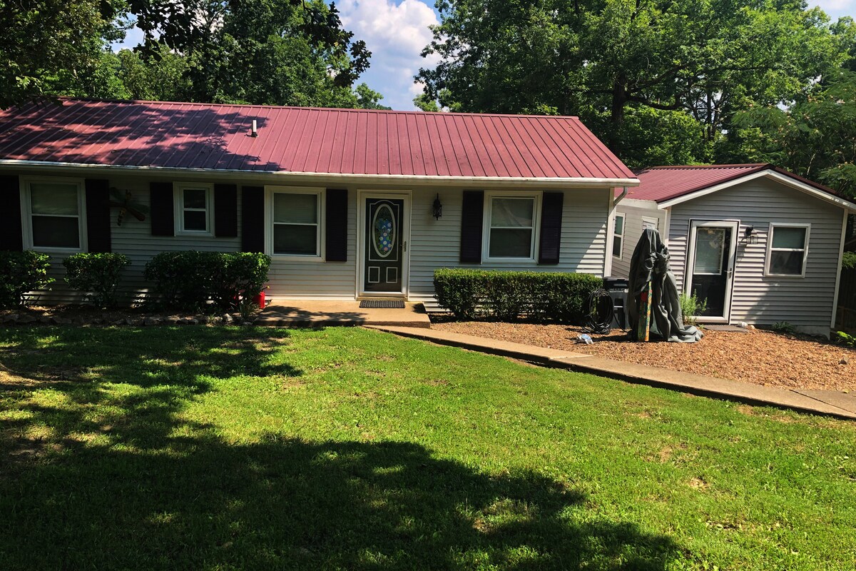 Ikhaya elithokomele elingu-3 lokugeza elingu-2 eliseceleni kwamabhange ase-Rough River enezikebhe ezincane. Irempu yesikebhe yomphakathi itholakala kalula ngemuva kwendlu futhi ichibi elikhulu liqhele ngemizuzu engu-15 kuphela yokugibela isikebhe. Imoto emfushane eya emabhishi ase-Rough River State Park. Indawo eningi yokulala enamakamelo amakhulu neNdlovukazi nekamelo le-Bunk elinemibhede emibili engu-5. Igalaji elikhulu kakhulu lizogcina isikebhe noma izikebhe ngenkathi uvakashela. Jabulela umdlalo we-ping pong, i-pool noma uthokomele ngasemlilweni!! Ilungele ukudoba!!