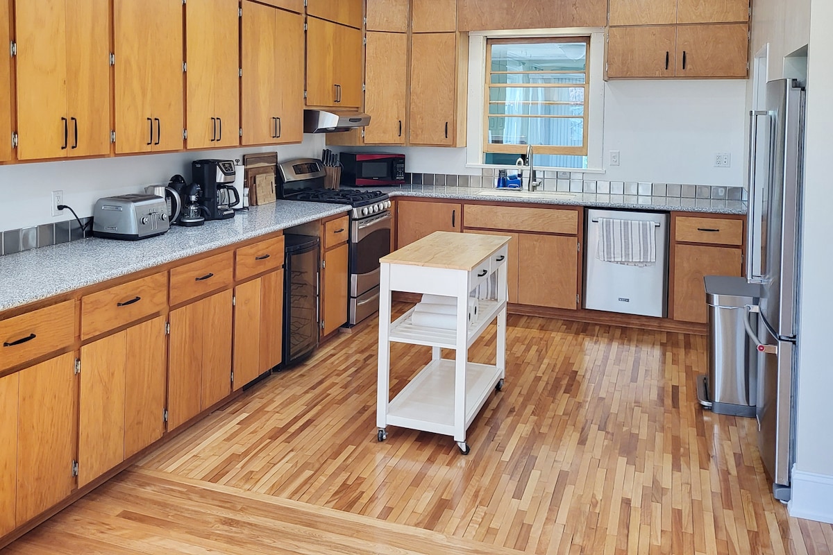 Ikhaya elihle elakhiwe ngo-1904, elisanda kususwa. Phezulu, amakamelo okulala angu-4 (imibhede yobukhulu beNdlovu)enegumbi lokugezela elihlanganyelwayo eligcwele. Ngaphansi kunegumbi lokuphumula, igumbi lokudlela/ikhishi eligcwele. Igumbi lokugezela elinguhhafu/igumbi lelondolo. Imibhede engu-2 eyodwa phansi esitezi sokuqala, eyodwa ingumbhede ophithizelayo. I-5 TV 's w/ Streaming Networks. WI_FI kuyo yonke indawo. I-verch enkulu w/ifenisha yangaphandle. Inqwaba yokupaka ngaphandle komgwaqo. Isitolo sokuthenga nokudla esiqhele ngebanga lokuhamba ngezinyawo. Inani ngosuku labantu abangu-1-4, ngemva kwalokho u- $ 25.00 izivakashi ngabunye, ubusuku ngabunye kuze kufike ingqikithi engu-10.