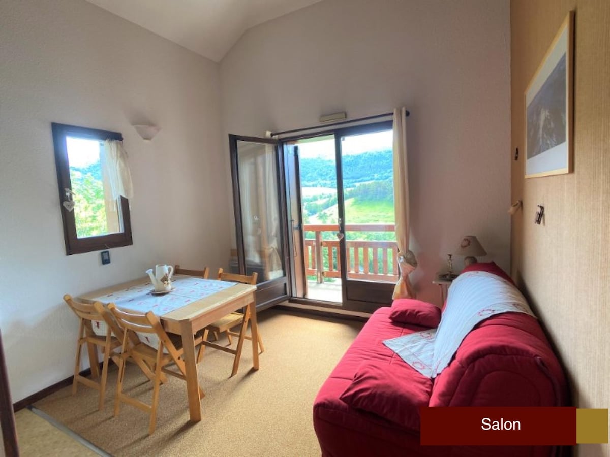 Thola ifulethi lethu elingu-22m2, eliphakathi kwe-resort endaweni ethulile enendawo yokubhukuda nethenisi. Inemibhede engu-5: umbhede omusha owodwa kasofa egumbini elikhulu, umbhede kasofa nombhede we-mezzanine endaweni yokungena esentabeni efudumele. Inekhishi elinakho konke (ama-induction hobs, i-microwave oven, izitsha, ifriji, umshini wokwenza ikhofi, ...), igumbi lokugezela elinobhavu, uvulande onezindawo zezintaba ezingenasithiyo futhi onganakwa .