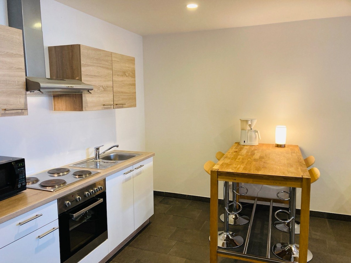 Ifulethi lesimanje ledolobha elingu-38 sqm maphakathi ne-Schweinfurt - indawo yakho ekahle yokuqala yokuhlola idolobha! Jabulela ikhishi elinakho konke, umbhede othokomele, i-smart TV, ne-WiFi yamahhala. Idolobha elidala elinezindawo zokudlela, amathilomu nezindawo ezikhangayo liqhele ngemizuzu embalwa. Ilungele imibhangqwana, abathandi bamasiko nanoma ubani ofuna ukujabulela i-Schweinfurt ngokweqiniso.