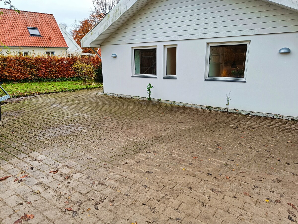 Indlu eklanywe ngobuciko phakathi nedolobhana elithule kakhulu lase-Karlslunde. Itholakala emgwaqeni ovaliwe amamitha angu-100 kuphela ukusuka echibini lomgwaqo wedolobha, kanye ne-150m ukusuka ekuthengeni. Jabulela ilanga ku-terrace evaliwe futhi uvumele izingane zilale esithasisweni esise-terrace. Indlu ikhanya futhi isesitayeleni ngokugxila ethaveni negumbi eliphilayo. Uma isimo sezulu singekho nawe, kune-18 sqm Orangery enokufinyelela okuqondile kusuka egumbini lokuphumula. Le ndlu itholakala ku-25min drive esuka e-Copenhagen, noma amakhilomitha angu-3 ukusuka e-Karlslunde Station.