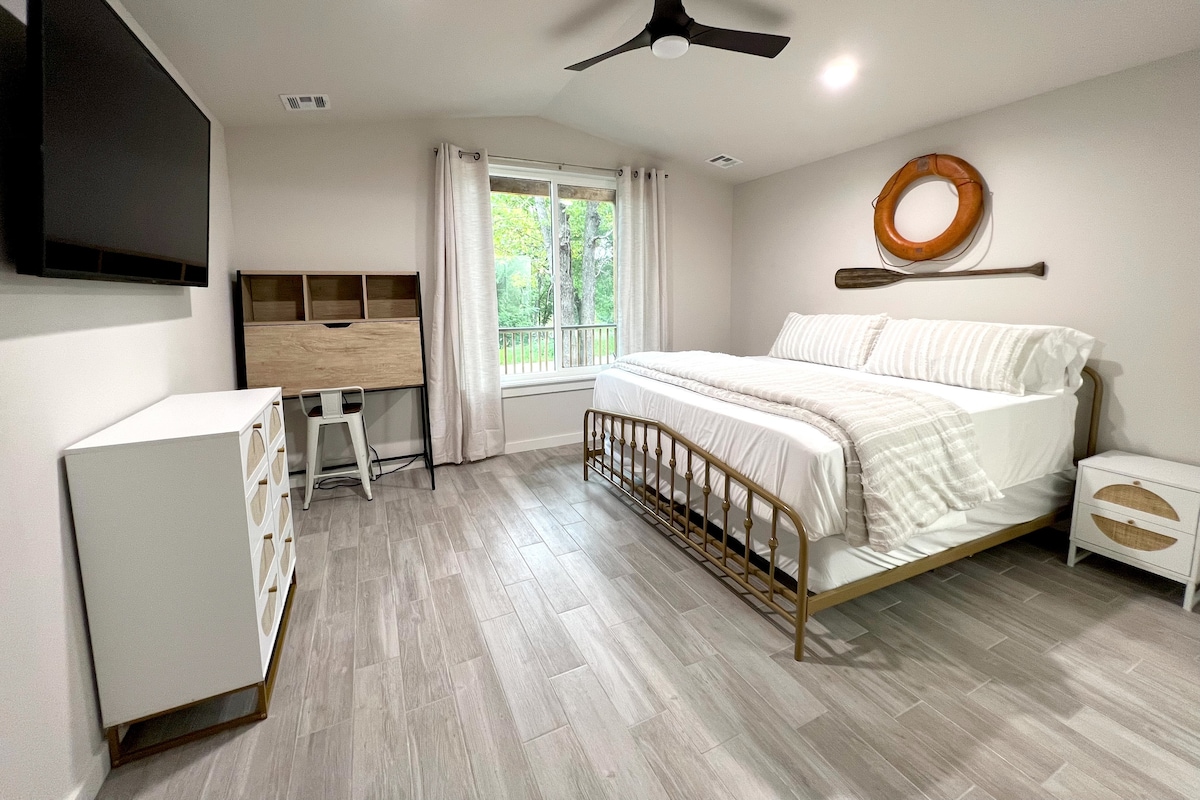 Leli khaya linakho konke okudingayo ukuze ube nendawo yokuhlala enhle ngaselwandle! Jabulela ukushona kwelanga ngamafasitela asuka phansi afike kuyisilingi noma uphumule kudekhi. Letha isikebhe sakho futhi usebenzise indawo yokubopha isikebhe egunjini lokupaka elingamamitha angu-32 elikahle lokugcina izinto. Hlala uxhunyiwe nge-inthanethi enejubane elikhulu futhi uchithe ubusuku nihlangene endaweni yomlilo egcekeni elikhulu elingemuva. Itholakala endaweni elungele izivakashi enyakatho ye-Wolf Creek Public Access, okukunikeza indawo esheshayo nelula yokufika emanzini ukuze udobe, ugwedle, futhi ujabulele izinto ezimnandi echibini.