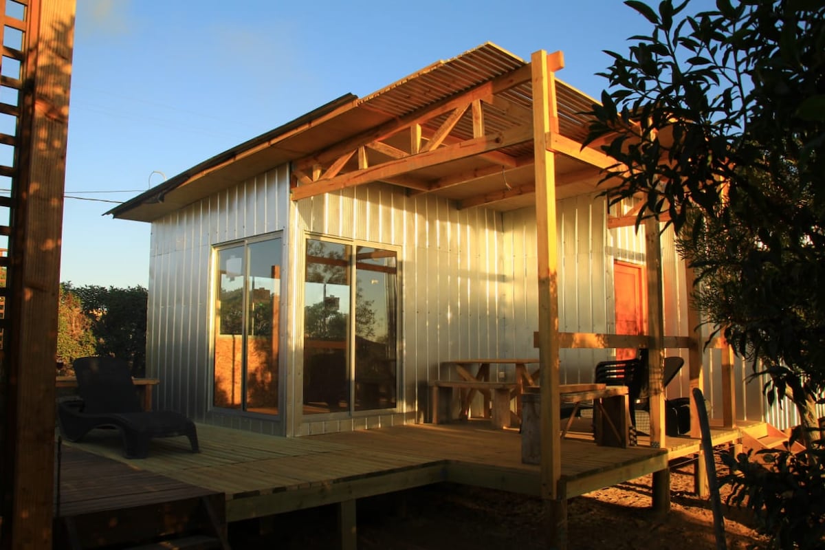 Ven y relájate en esta tiny house matrimonial moderna y acogedora a solo pasos de la playa. Con una excelente ubicación en un sector tranquilo y familiar. La cabaña tiene estacionamiento propio. Se ubica en un sitio espacioso junto a otras tres cabañas. Cuenta con terraza propia, wifi, smart TV, fogon, lavadora, frigobar y está recién remodelada. Se aceptan mascotas! 🐾