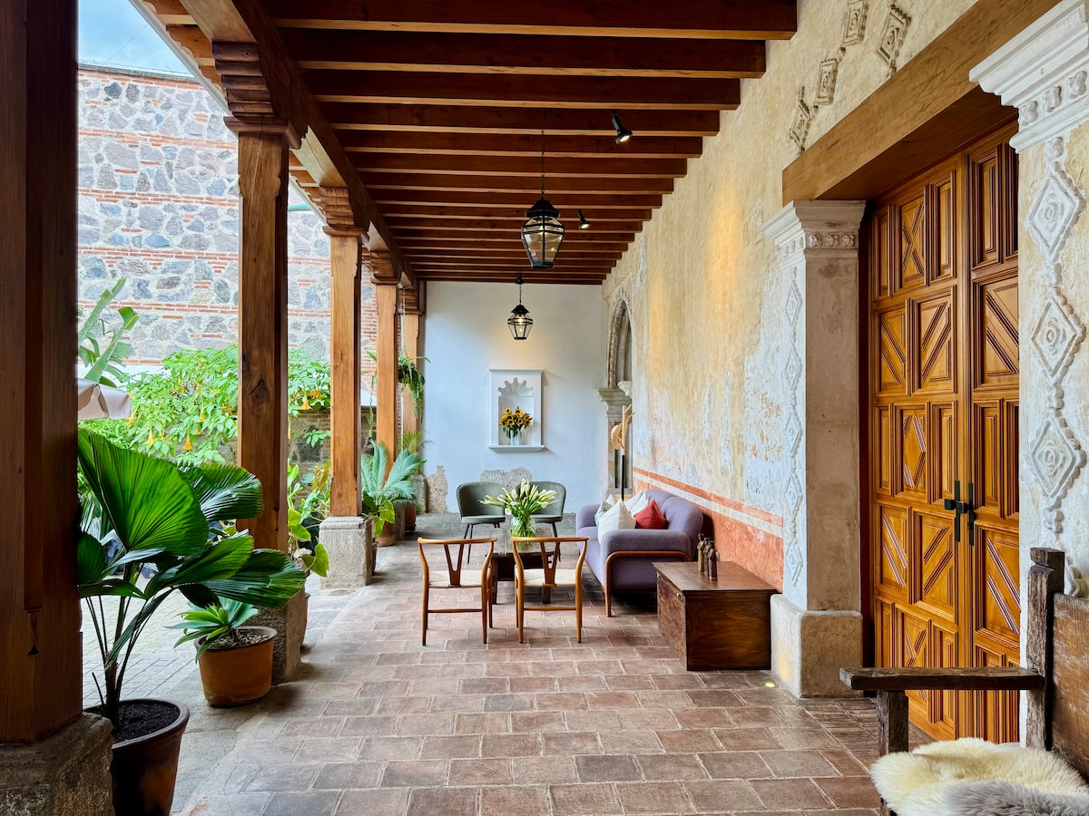 Jabulela ukuthula nokunethezeka kwendlu yethu yekhulu leminyaka, etholakala kwenye yezindawo ezinhle kakhulu enkabeni ye-Antigua Guatemala. Leli gugu elingokomlando, elihlotshiswe ngezingcweti zase-Guatemala, lisekela futhi ligubha ubuciko bendawo. Isendaweni enezitebhisi ezisuka kumathilomu, izitolo, nezindawo zokudlela, indlu inikeza indawo ethulile yokuvakasha edolobheni. Uma ukule ndawo, jabulela ukubuka izintaba-mlilo ze-Agua, i-Acatenango, ne-Fuego. Isidlo sasekuseni, esilungiselelwe owesifazane wendawo onobungane, sifakiwe.