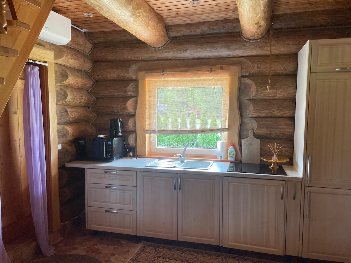 Ngokuyisisekelo yindlu yokugeza yase-Latvia enombono omuhle ongabelana ngayo nabantu bakho abaseduze. Uma ufuna uzoba nethuba lokujabulela i-sauna yendabuko (eyengeziwe + 60 EUR, kukhona nobhavu wamanzi ashisayo ongaphandle otholakalayo + 60 EUR futhi ubhukude echibini elicacile eduze nendlu yokugezela. Indawo ezungezile ibuka ichibi elikhudlwana futhi uma uthanda ngisho nokugibela isikebhe noma ukudoba. Indlu yombungazi iqhele ngamamitha angu-80, ngakho uzokwazi ukuba nephrayivesi yakho. Jabulela i-Latvia!