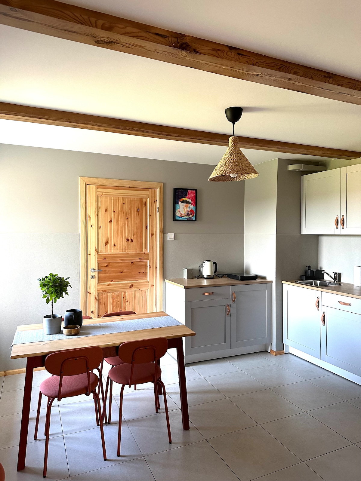“Indlu Yesikebhe” isho igalaji lesikebhe elilungisiwe eliphinde lagcina ubuhle lwayo lwasekuqaleni. Itholakala maphakathi nedolobha, kodwa uma ufika lapha, uzokwazi ukujabulela ukuthandana nemvelo. Iwindi linikeza umbono omuhle wesigodlo, osekude ngamamitha ayikhulu - inendawo yokubhukuda emangalisayo, indawo yokubhukuda emangalisayo, isigodlo sase-Livonian Ordeen amanxiwa kanye nama-cafe ambalwa. Ungajabulela ukushona kwelanga okuhle ngefasitela, futhi umndeni omusha we-swans uvame ukuba izivakashi- ukulungiselela ukudla okumnandi.