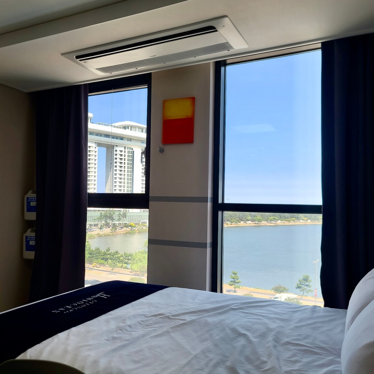 제 개인 별장 호텔객실로 Gorgeous Ocean뷰입니다. 조식, 수영장이용은 포함되어 있지 않은 숙박만 가능한 객실입니다. 오션동 2층 헬스장 무료이용 가능합니다. [조식은 체크인시 구입시 할인되며, 수영장 정보는 홈페이지 참조바랍니다.] 편안하게 쉴 수 있는 8층에 위치한 바다가 잘 보이는 객실입니다. 엘리베이터에서 가까워서 이동이 편합니다. 해당 건물 전체에 거의 없는 제빙기가 제 객실 바로 앞에 위치하고 있습니다. 호텔에 다양한 편의시설이 있고, 걸어서 1분 위치에 바다와 해변이 펼쳐저 있으며, 솔숲은 산책하기에 최고입니다. 2박 이상 숙박시 중간에 룸메이킹(청소)를 제공하지 않습니다. 따라서 2박 이상 숙박시 중간 청소가 필요하시면 별도 비용으로 호텔 프론트에 신청하시기 바랍니다.[청소비는 체크아웃청소비만 결제받고 있습니다. 35000원이나 하는 청소가 굳이 필요 없는것같아서요.] 객실내 일회용품이 없습니다. [샴푸, 컨디셔너, 바디워시, 핸드워시, 드라이기는 있습니다.]