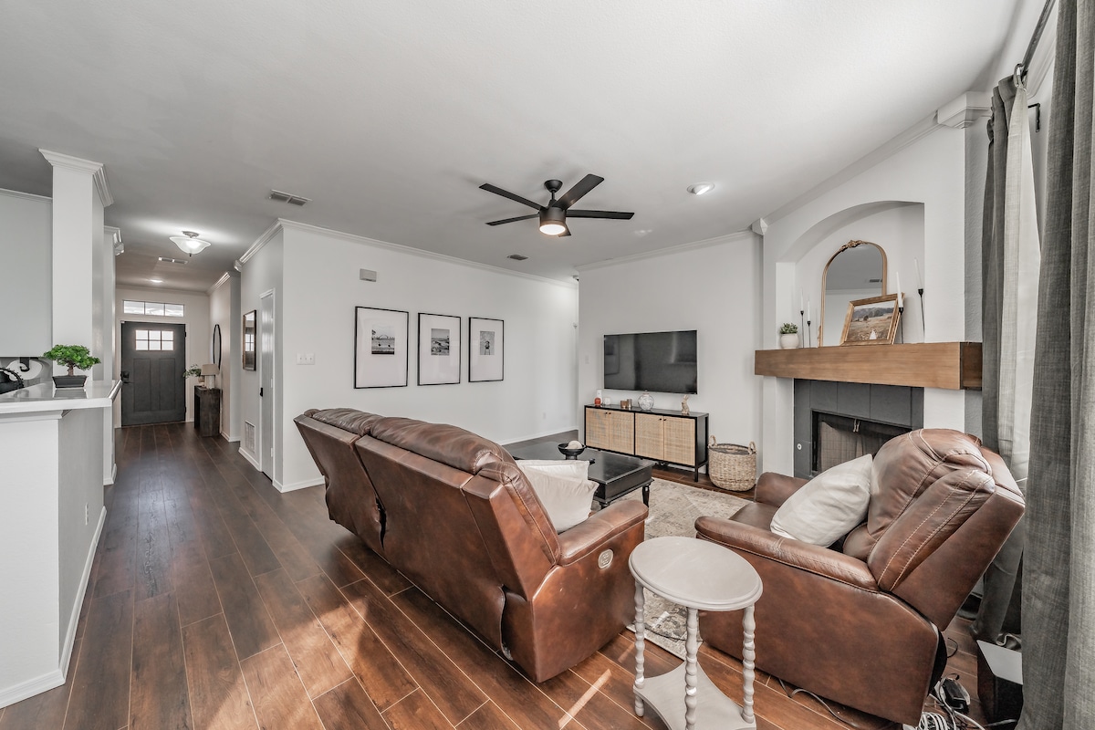 I-townhome esezingeni eliphezulu enkabeni yeFrisco, imizuzu ukusuka ePGA Frisco, e-Universal Studios, eThe Star, nasezindaweni zokudlela nezokuthenga ezihamba phambili. Jabulela imihlobiso yesimanje, amagumbi okulala athokomele, ikhishi eligcwele, ne-WiFi esheshayo endaweni ethulile nephephile. Ilungele uhambo lwegalofu, izinsuku zemidlalo, uhambo lwebhizinisi, noma ukuvakasha komndeni. Hlala maphakathi, hlala ukhululekile, futhi ujabulele okungcono kakhulu kwe-Frisco.
